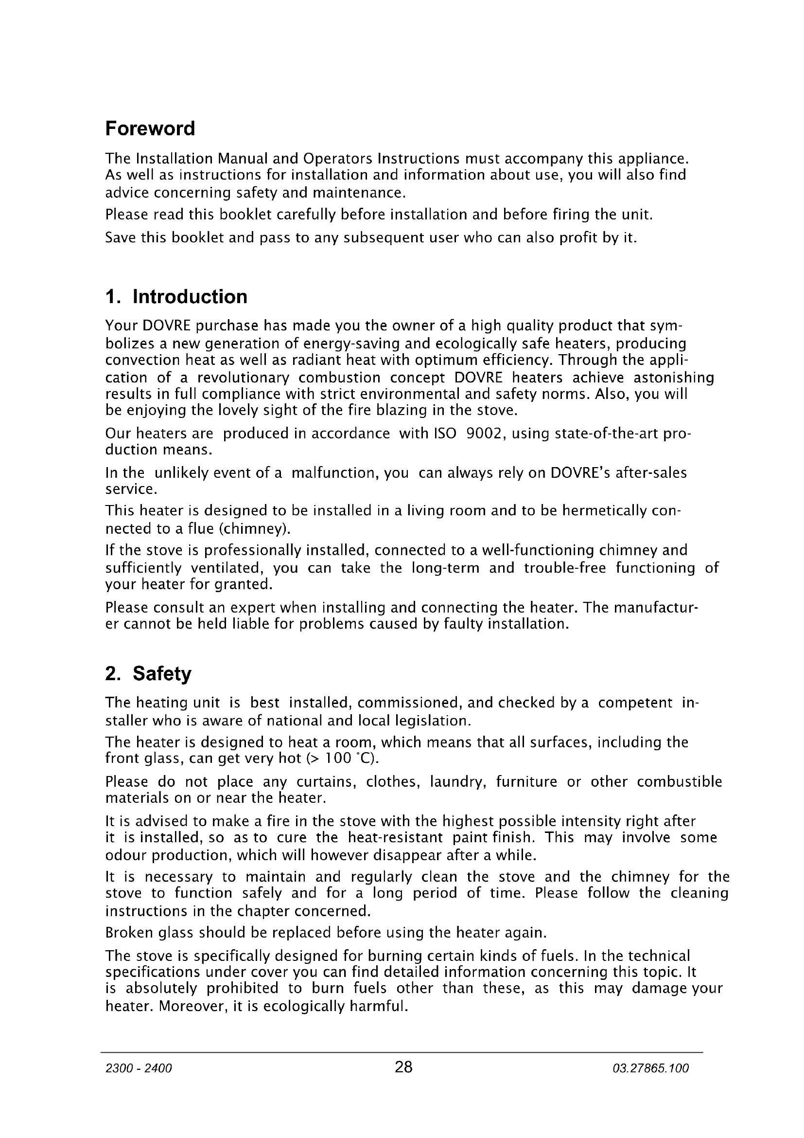 2400BSA - Fireplace DOVRE - Free user manual and instructions