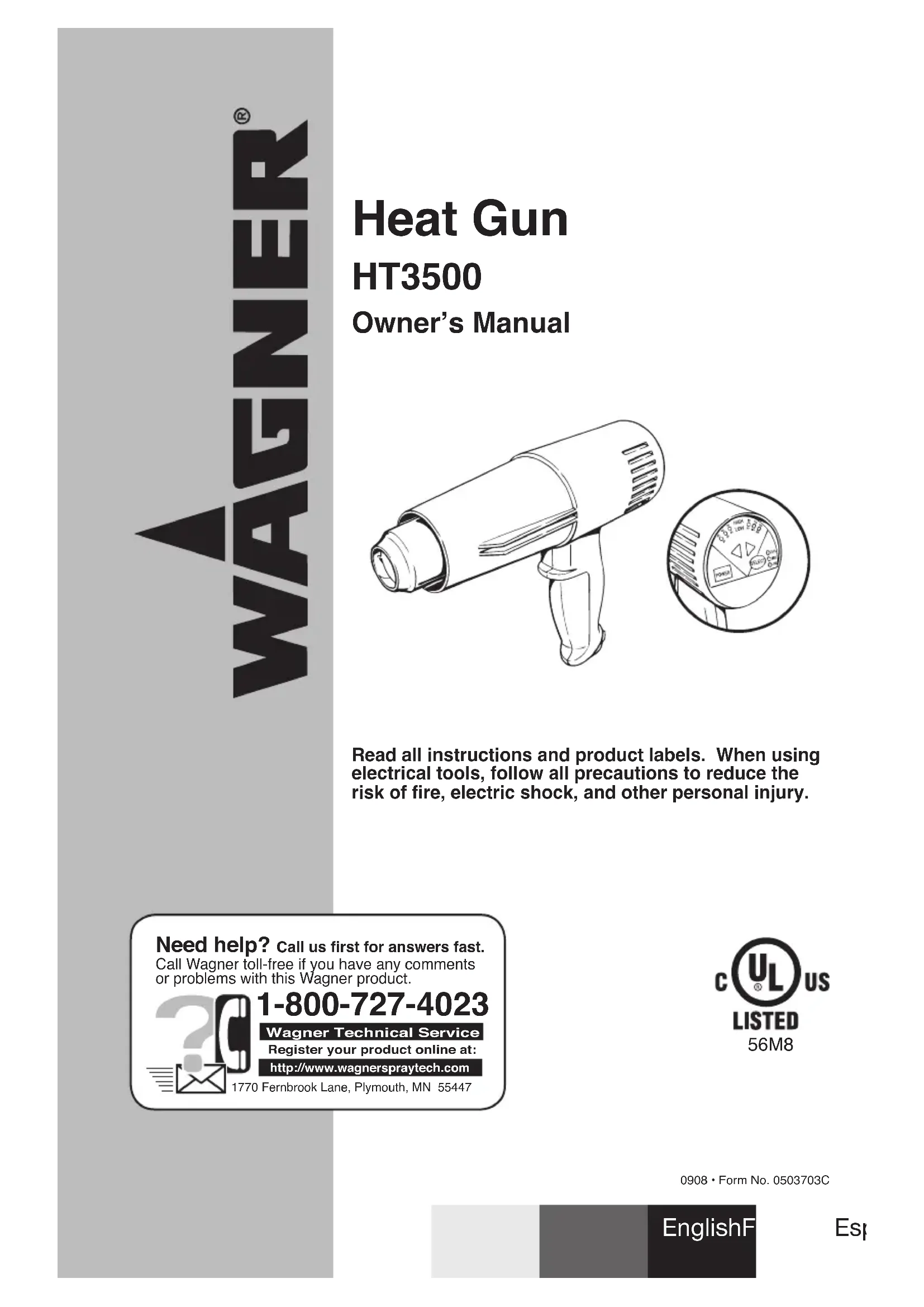 Download the instructions for your Heat gun in PDF format for free! Find your manual HT3500 - WAGNER and take your electronic device back in hand. On this page are published all the documents necessary for the use of your device. HT3500 by WAGNER.