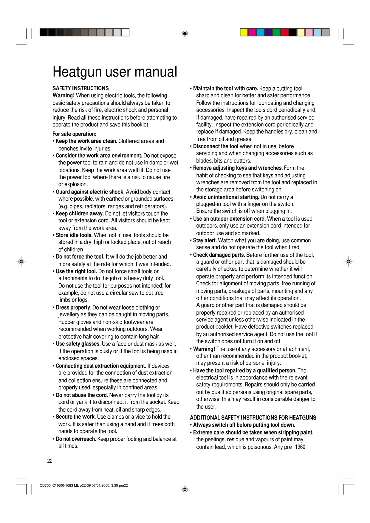 ADDITIONAL SAFETY INSTRUCTIONS FOR HEATGUNS