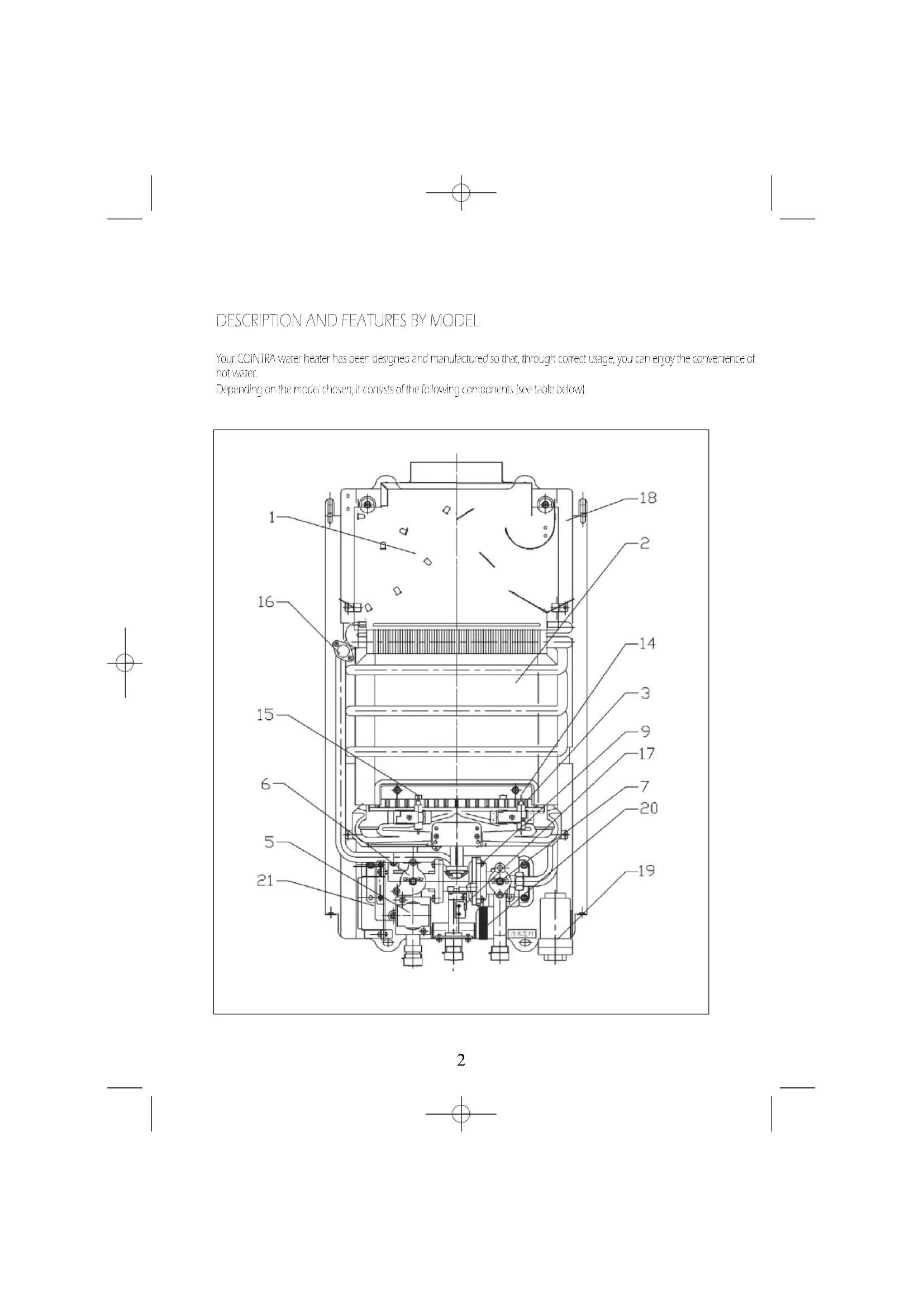 Your COINTRA water heater has been designed and manufactured so that, through correct usage, you can enjoy the convenience of hot water. Depending on the model chosen, it consists of the following components (see table below).3