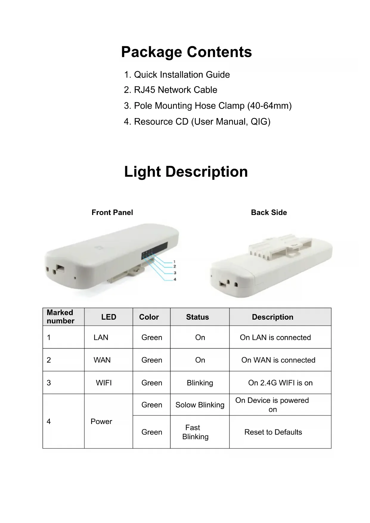 | 2 | WAN/POE port(10/100Mbps RJ45 port) | The WAN/POE port is used to connect to network devices, such as a POE switch OR POE adapter to power the device. (POE Power adapter unit is to be ordered separately) |