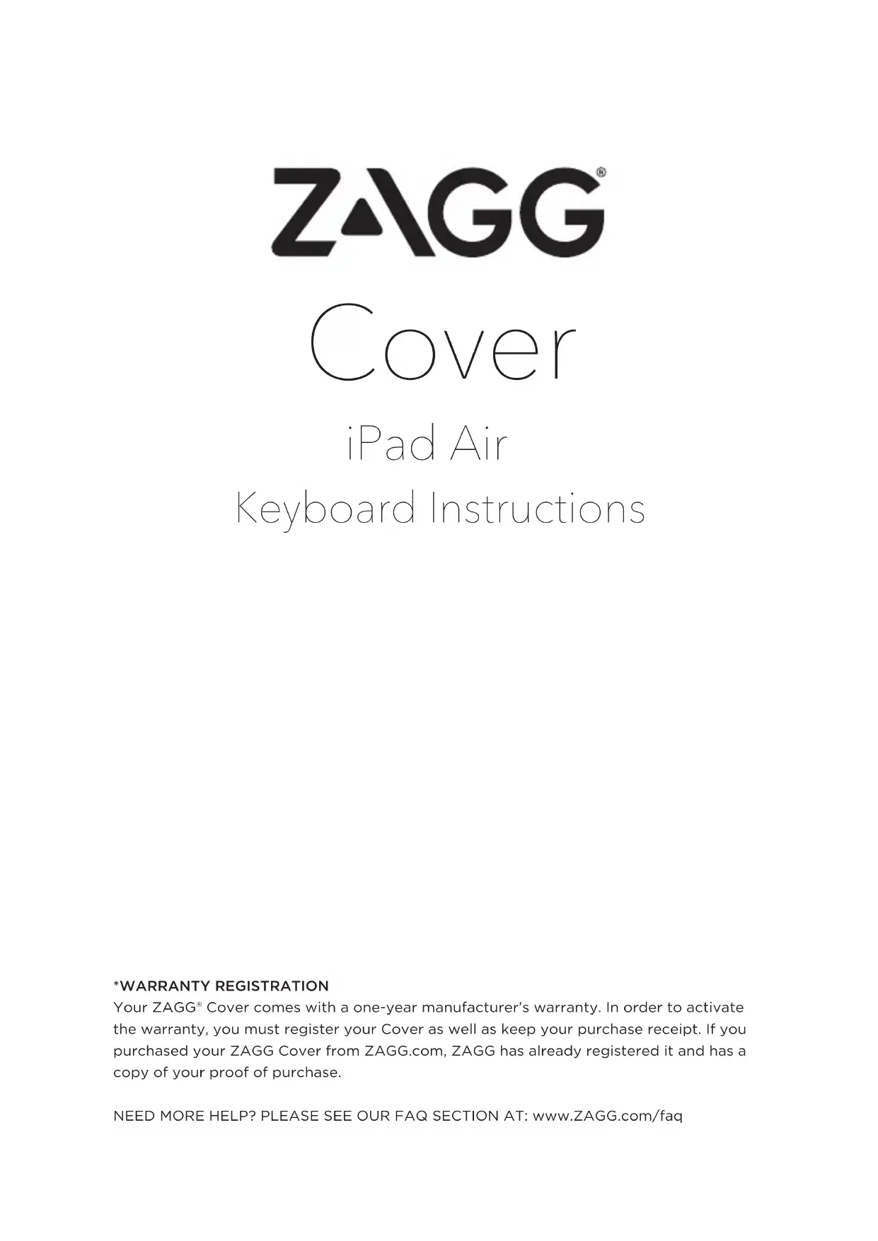 Your ZAGG® Cover comes with a one-year manufacturer's warranty. In order to activate the warranty, you must register your Cover as well as keep your purchase receipt. If you purchased your ZAGG Cover from ZAGG.com, ZAGG has already registered it and has a copy of your proof of purchase.