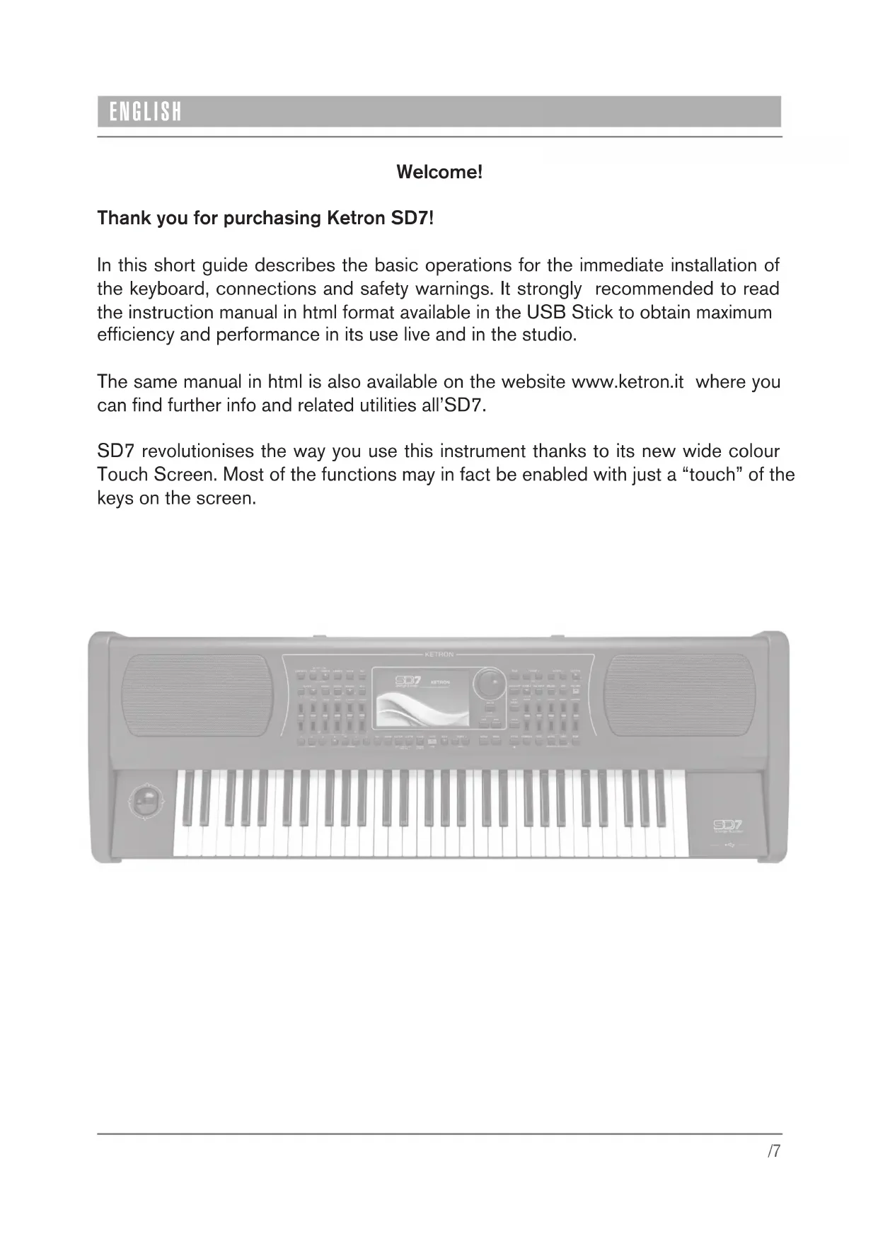 SD7 - Keyboard KETRON - Free user manual and instructions