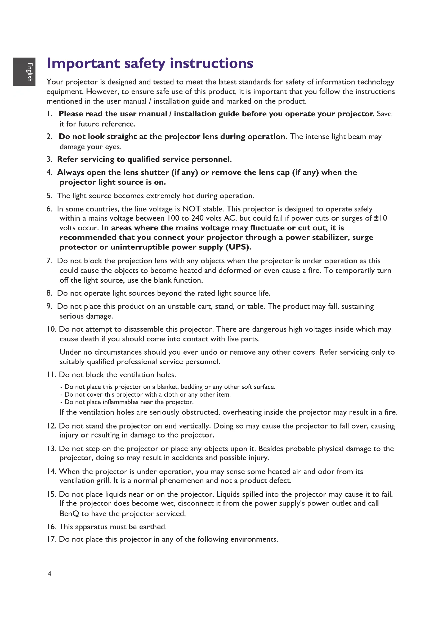 1. Please read the user manual / installation guide before you operate your projector. Save