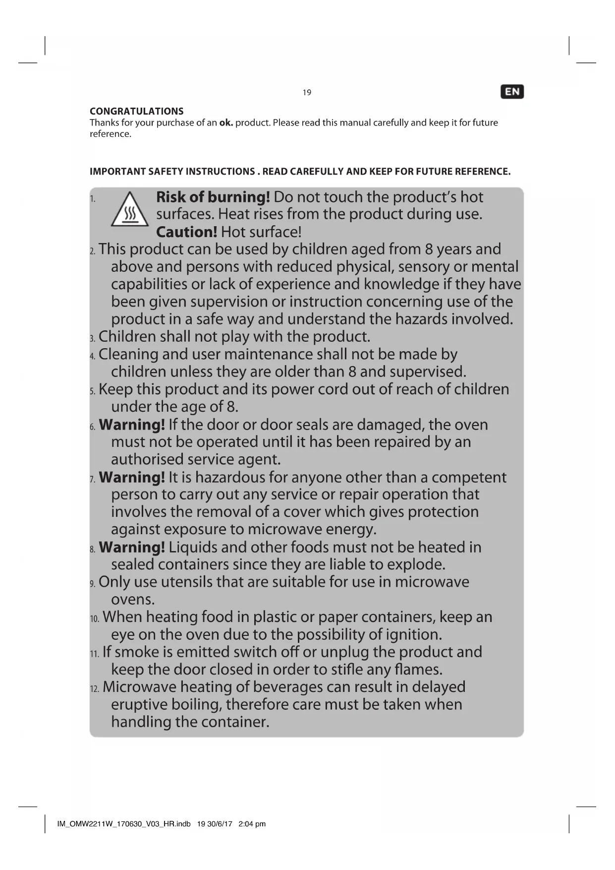 supervision when adequate instructions have been given so that the child is able to use the oven in a safe way and understands the hazards of improper use.. IM_OMW2211W_170630_V03_HR.indb 20 30/6/17 2:04 pm21
