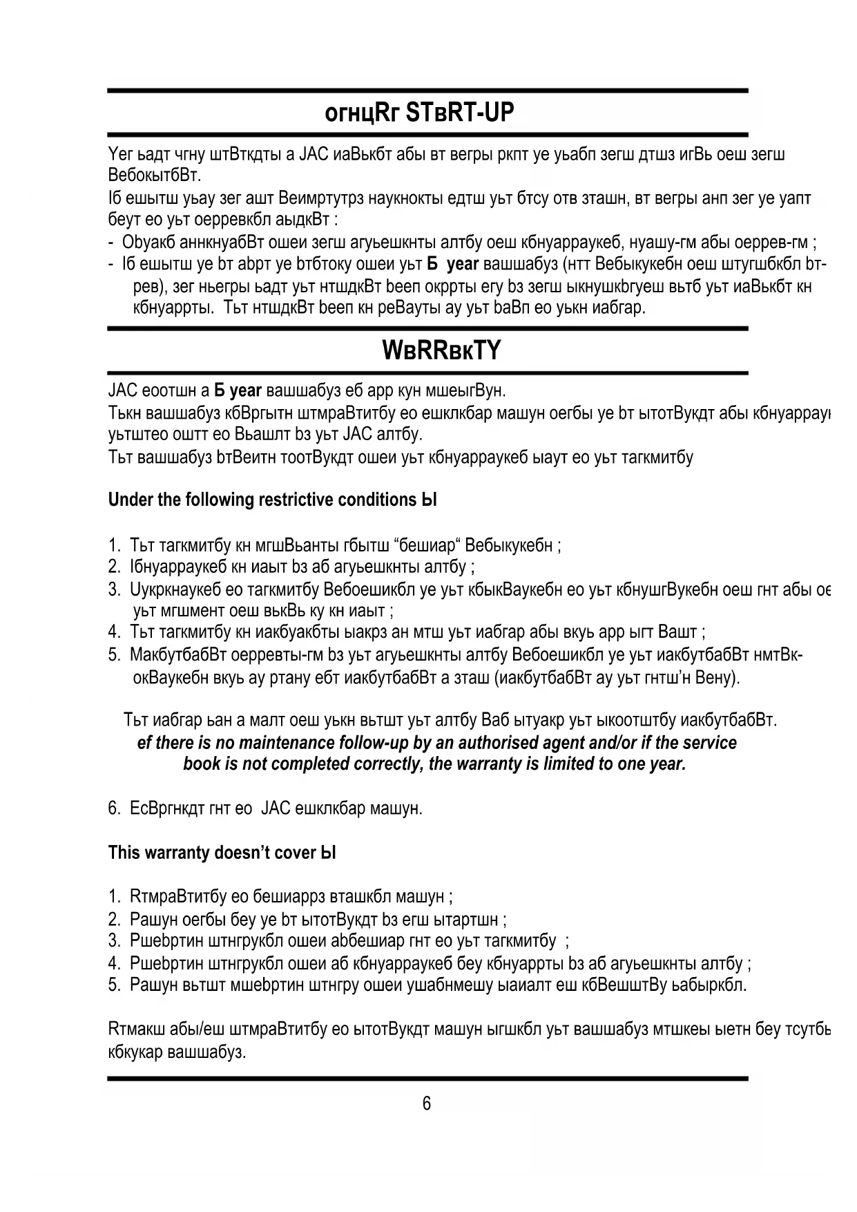 6. Exclusive use of JAC original parts.