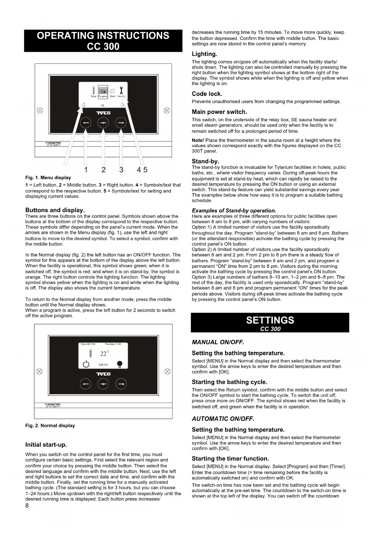 Tylö CC300T - Operating instructions for control panel CC 300/CC 300T. English page 8. - 1