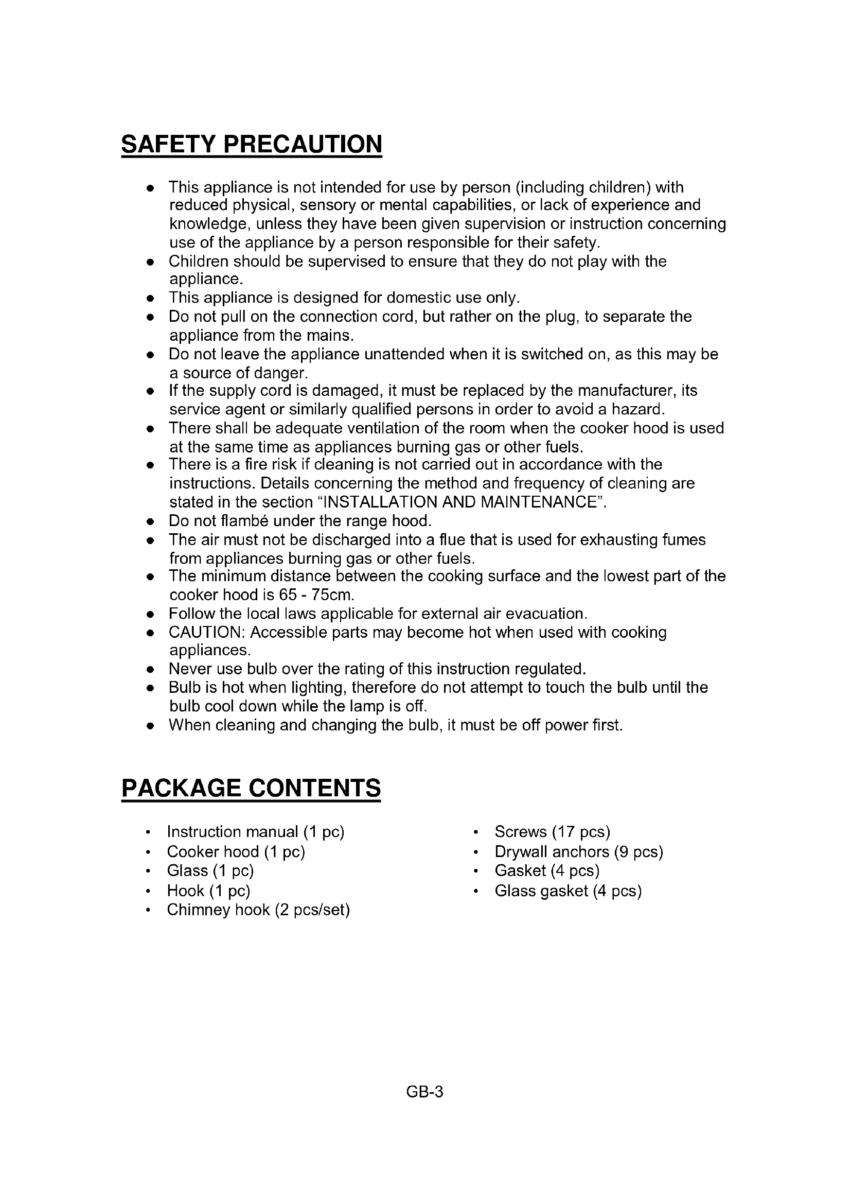 - There shall be adequate ventilation of the room when the cooker hood is used at the same time as appliances burning gas or other fuels.