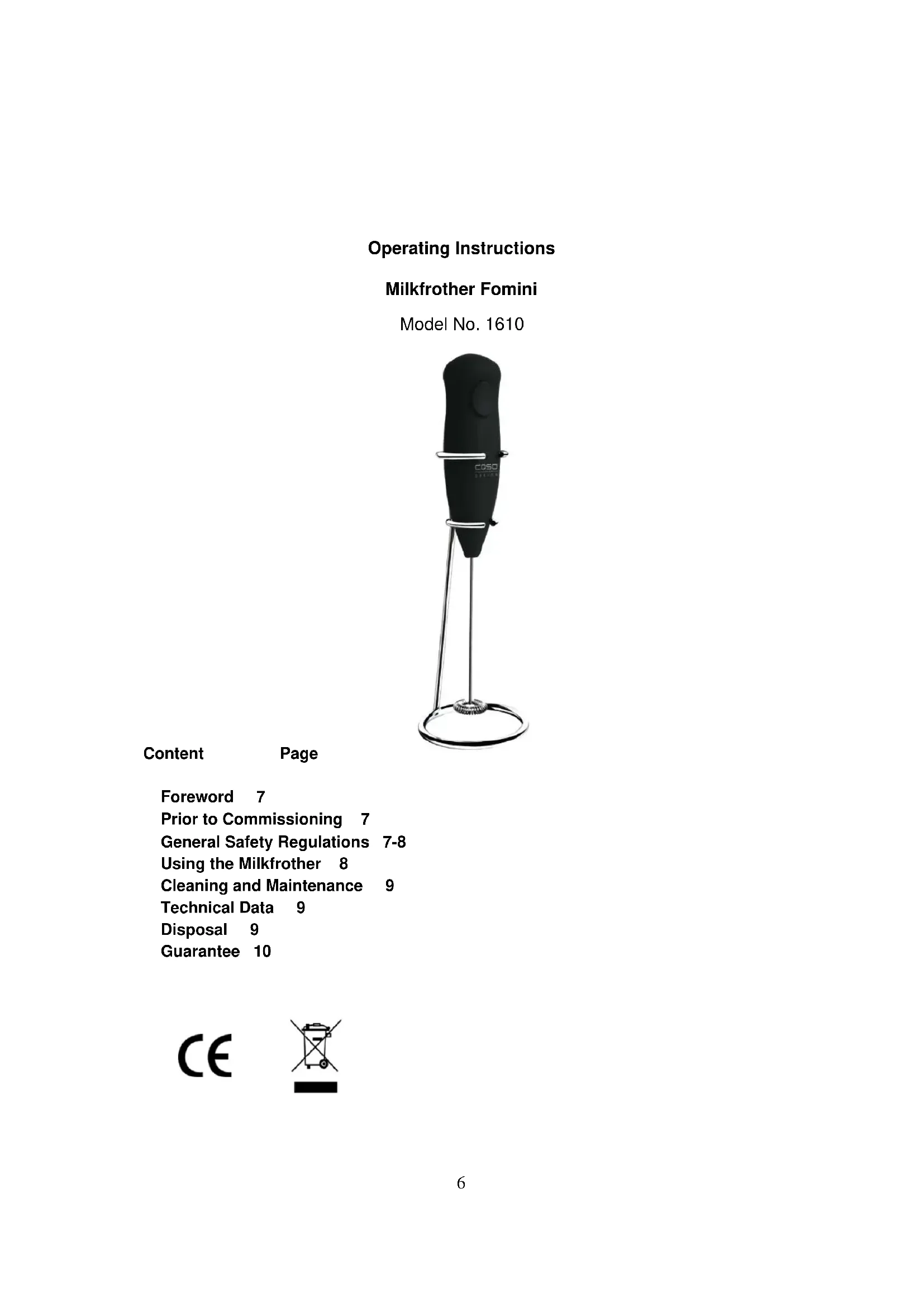 Download the instructions for your Milk frother in PDF format for free! Find your manual Fomini 1610 - CASO and take your electronic device back in hand. On this page are published all the documents necessary for the use of your device. Fomini 1610 by CASO.