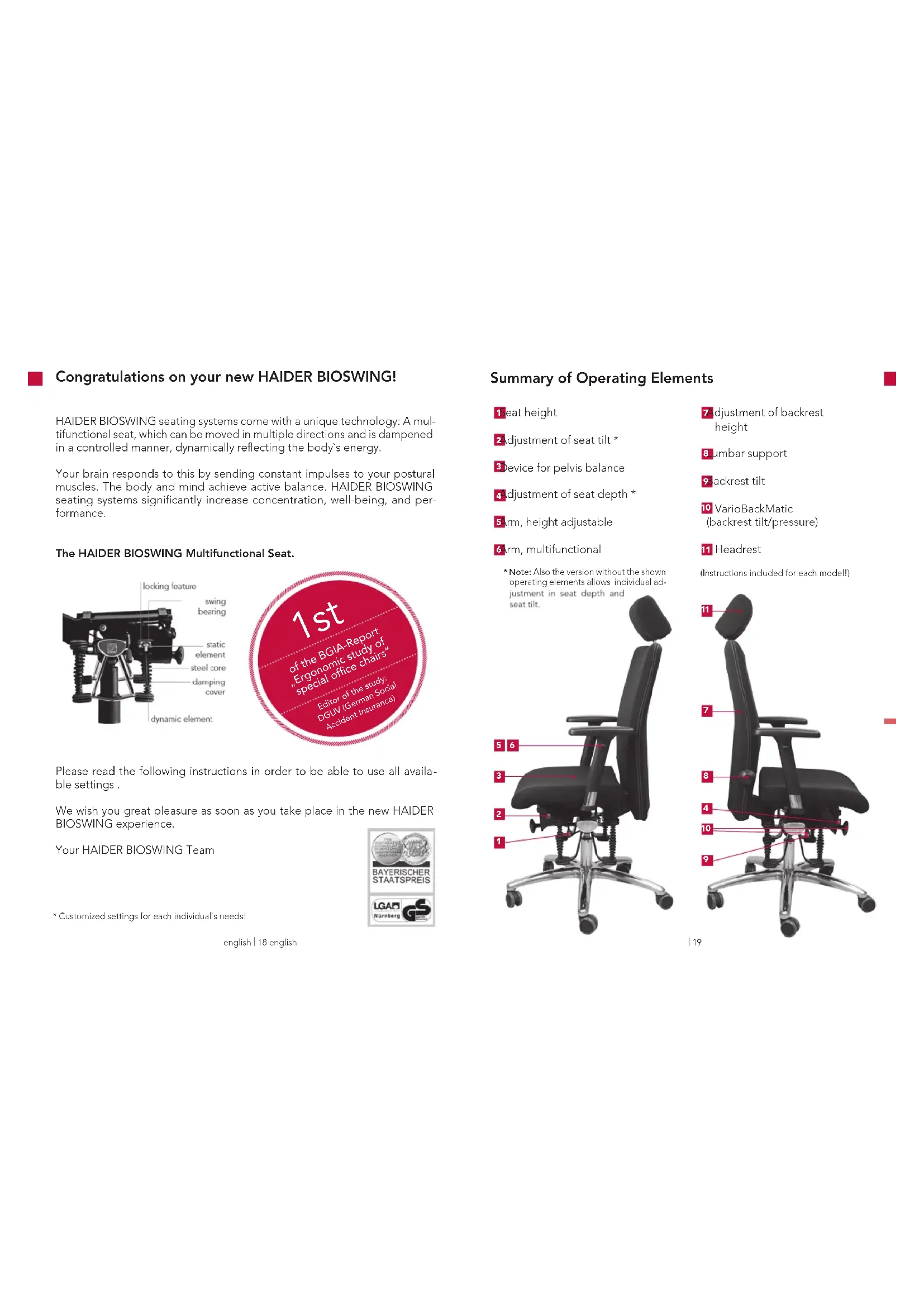 We wish you great pleasure as soon as you take place in the new HAIDER BIOSWING experience.