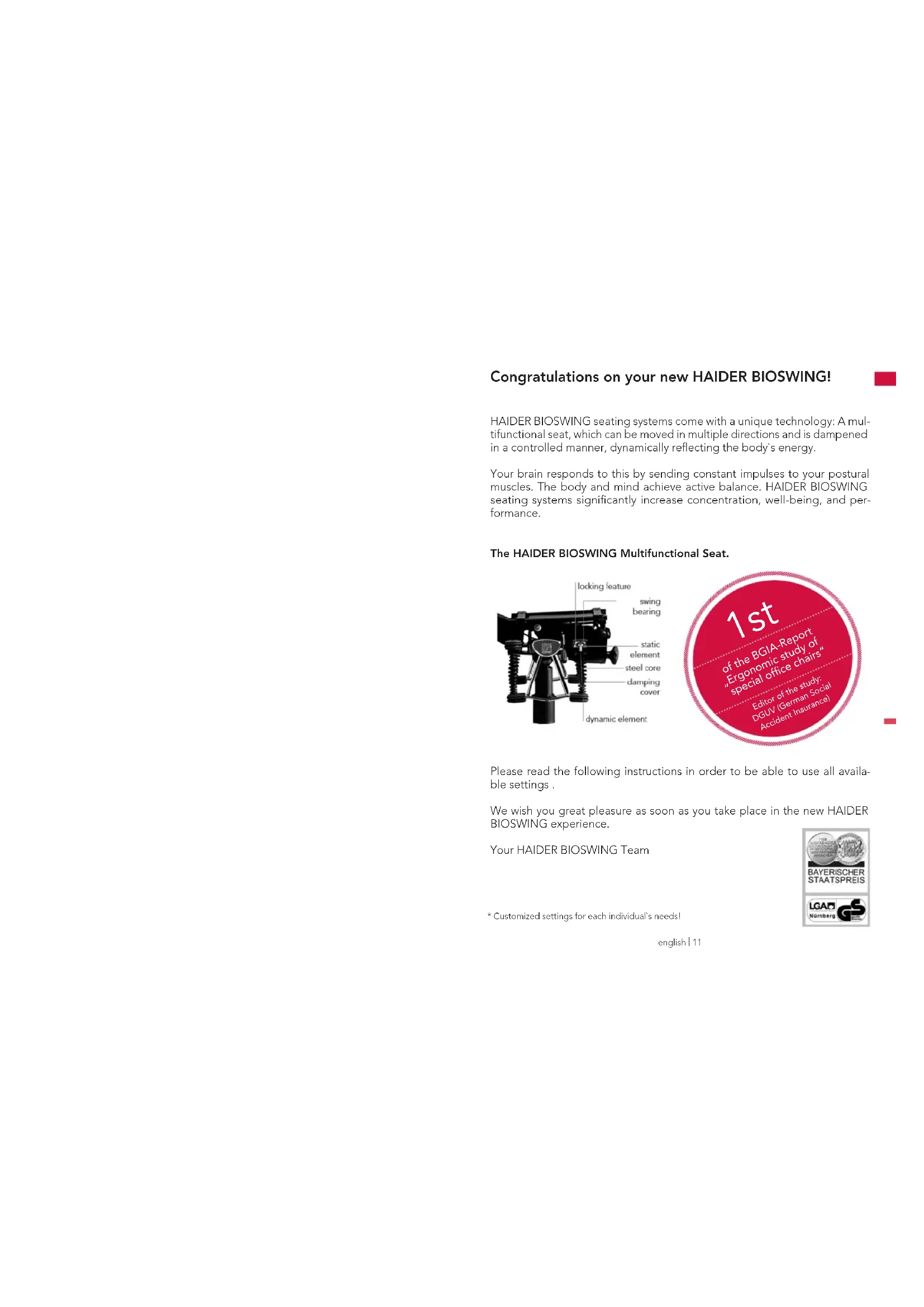 We wish you great pleasure as soon as you take place in the new HAIDER BIOSWING experience.