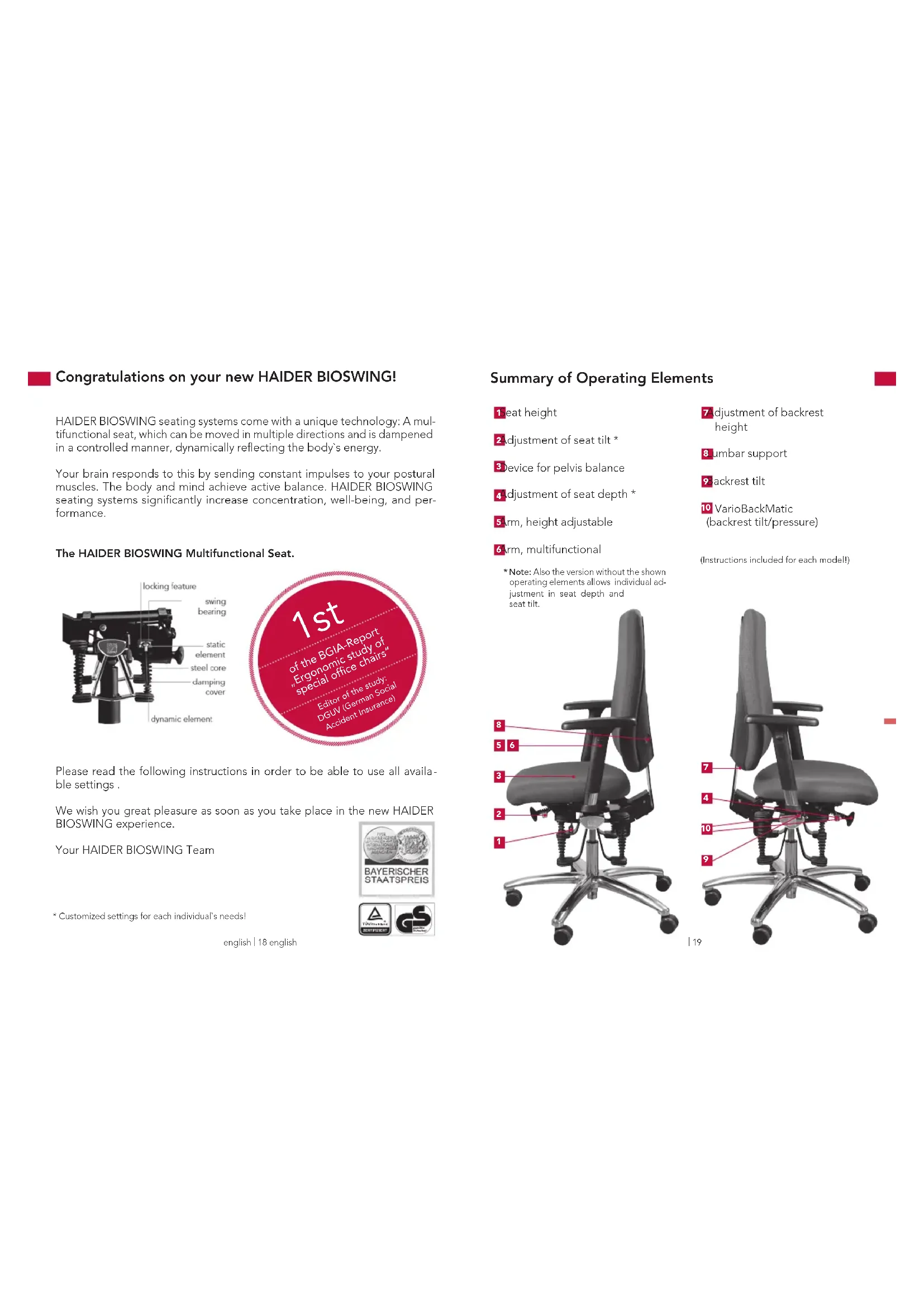 We wish you great pleasure as soon as you take place in the new HAIDER BIOSWING experience.