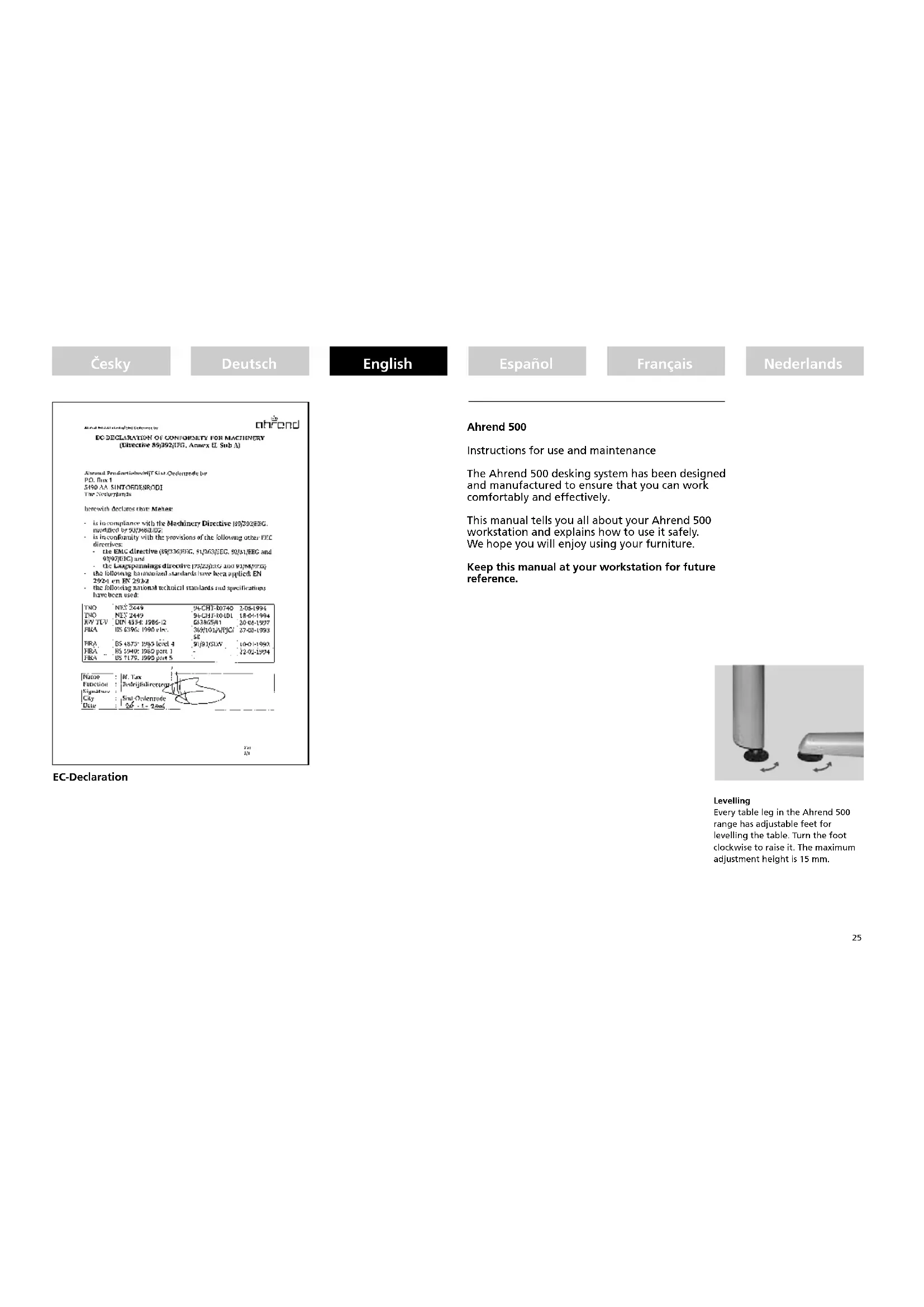 This manual tells you all about your Ahrend 500 workstation and explains how to use it safely. We hope you will enjoy using your furniture.