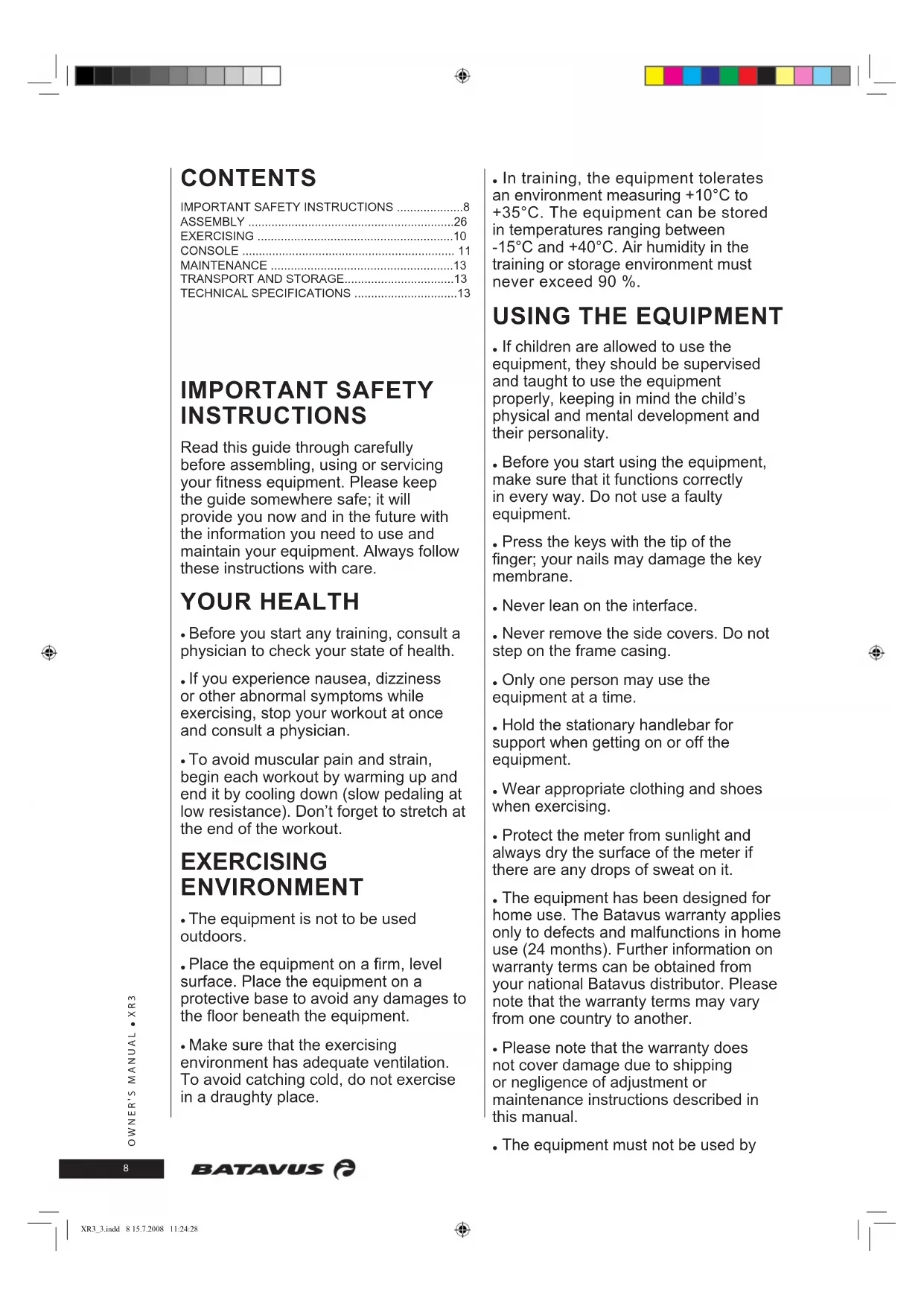 USER MANUAL XR3 Batavus