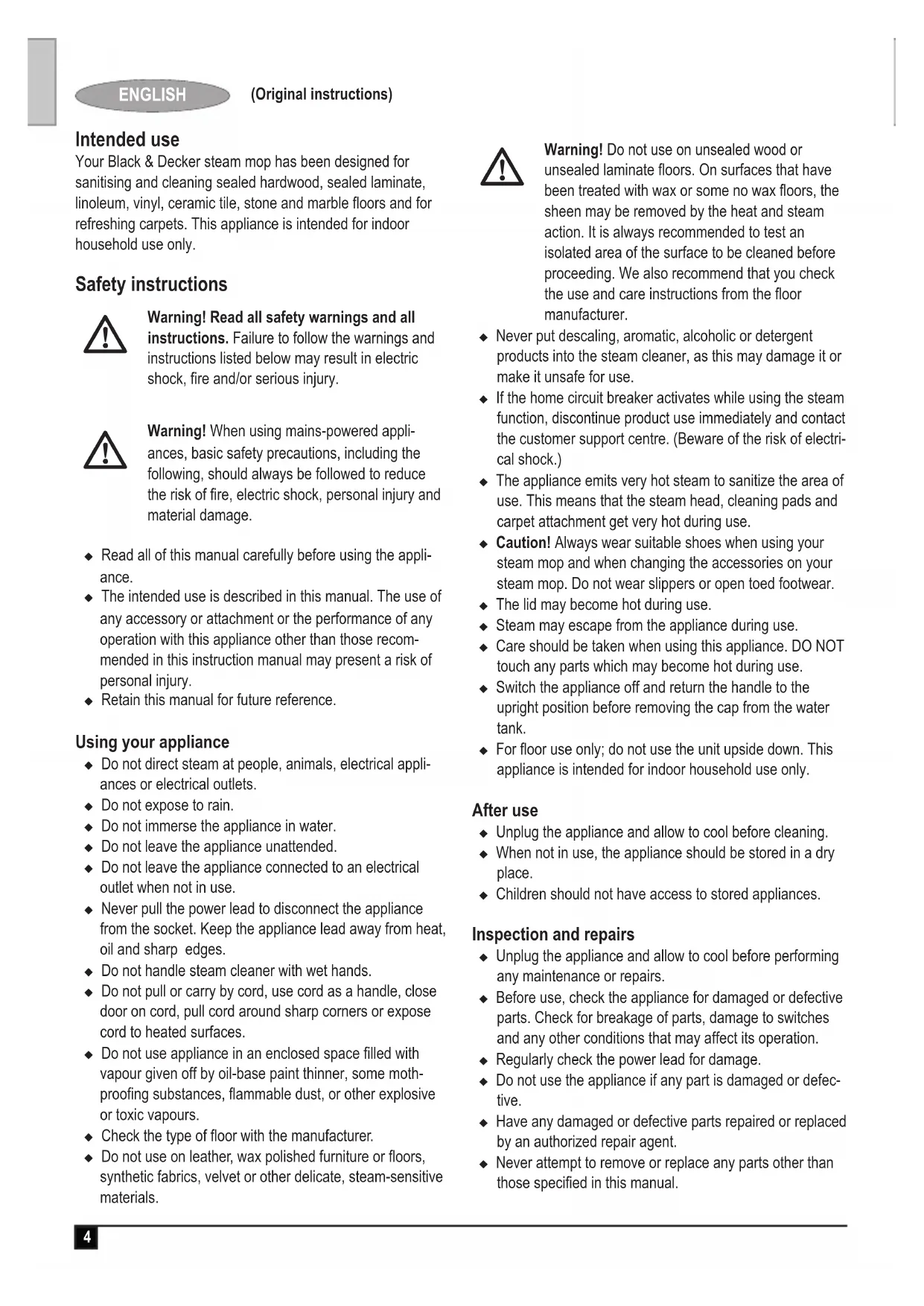 Download the instructions for your Steam cleaner in PDF format for free! Find your manual FSM1500 - BLACK & DECKER and take your electronic device back in hand. On this page are published all the documents necessary for the use of your device. FSM1500 by BLACK & DECKER.
