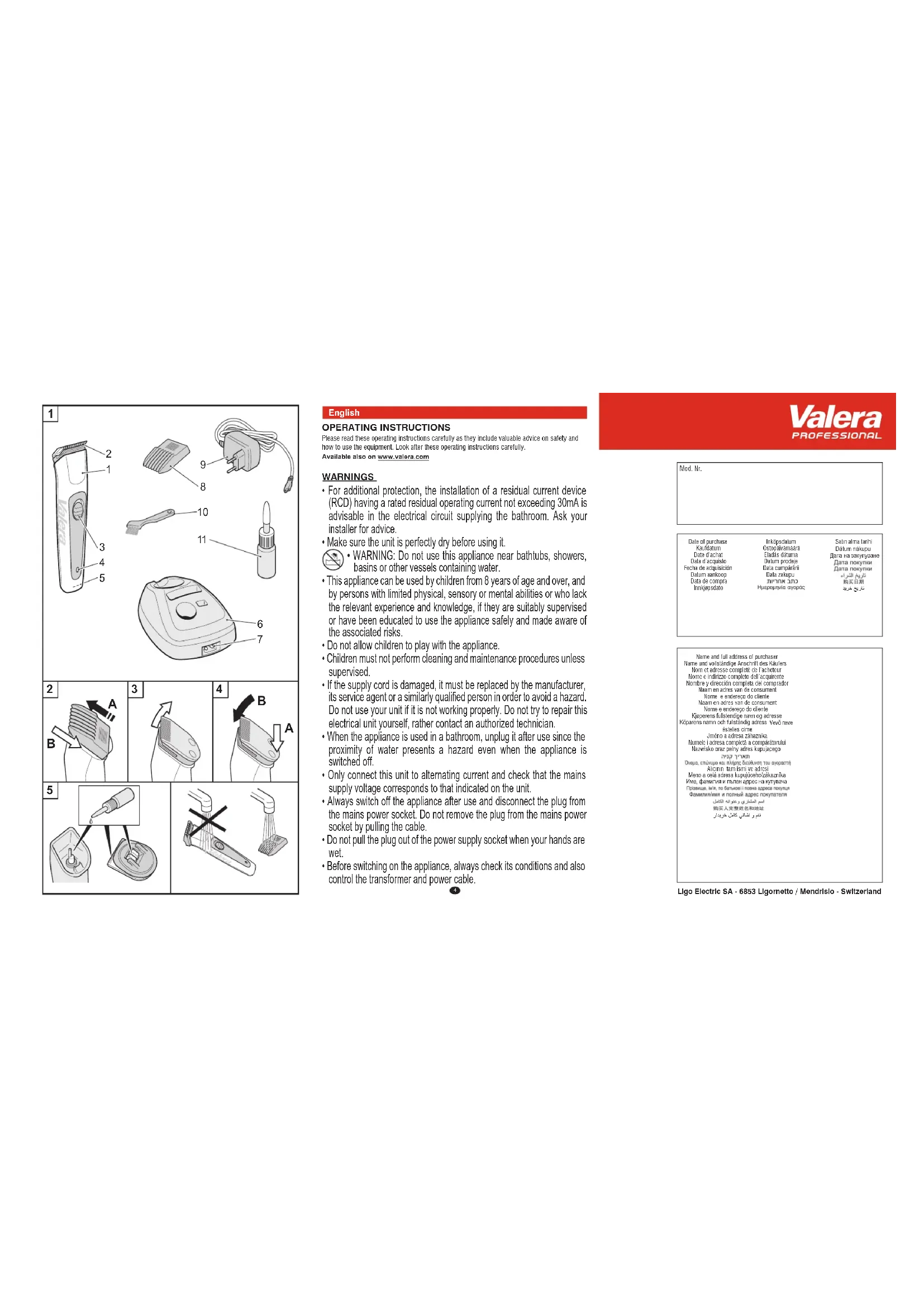 ϩΎηϭήϓ ϱΎπϣ ϭ ήϬϣ Distributed by Ligo Electric SA - Via Ponte Laveggio, 9 6853 Ligornetto / Mendrisio - Switzerland Valera is a registered trademark of Ligo Electric S.A. - Switzerland