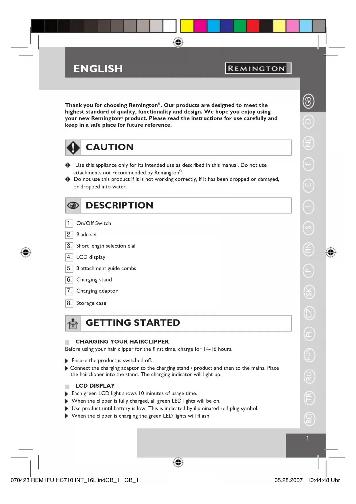 USER MANUAL HC710 REMINGTON