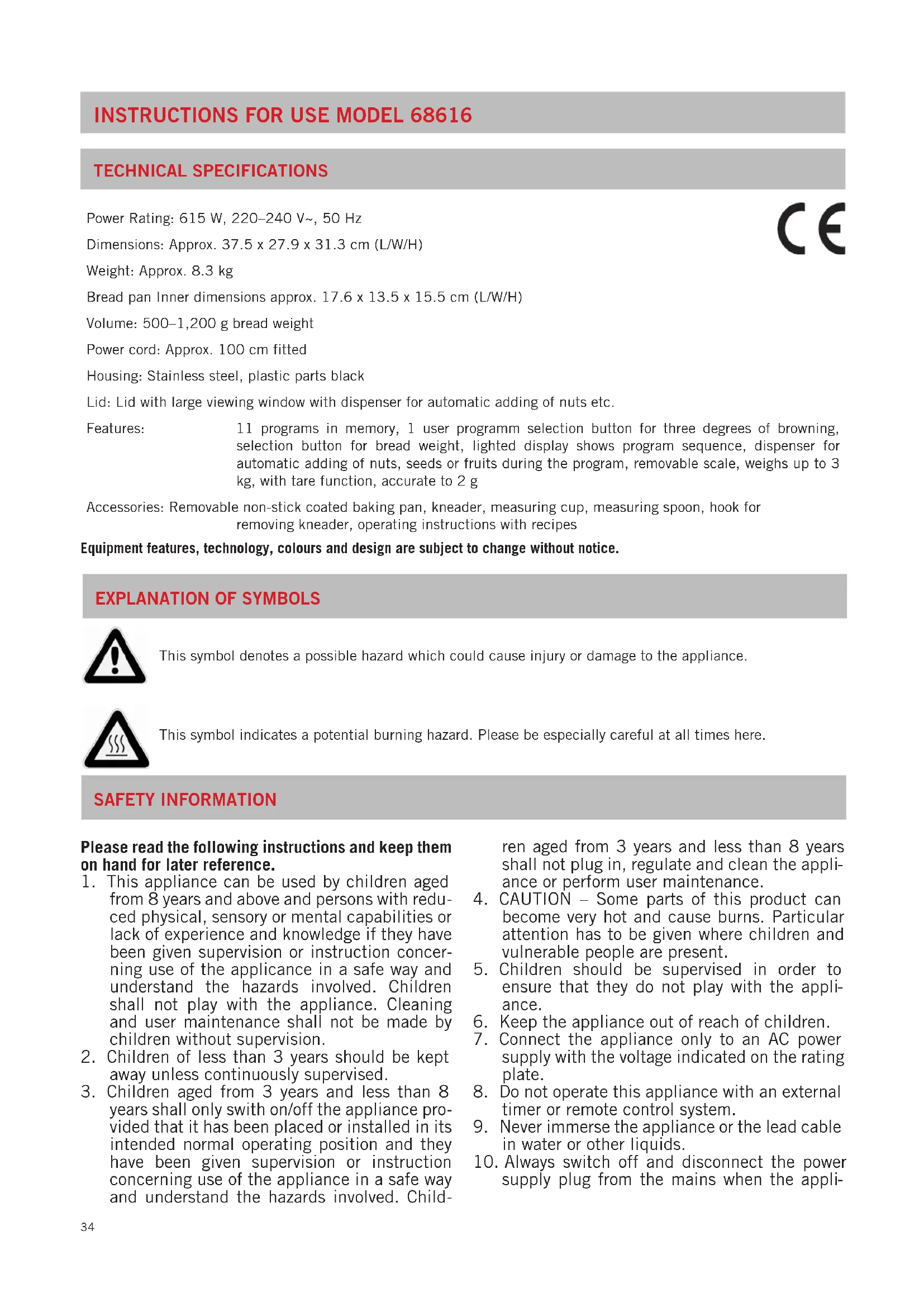 This symbol denotes a possible hazard which could cause injury or damage to the appliance. This symbol indicates a potential burning hazard. Please be especially careful at all times here.35 ance is not being used and before it is clea- ned.