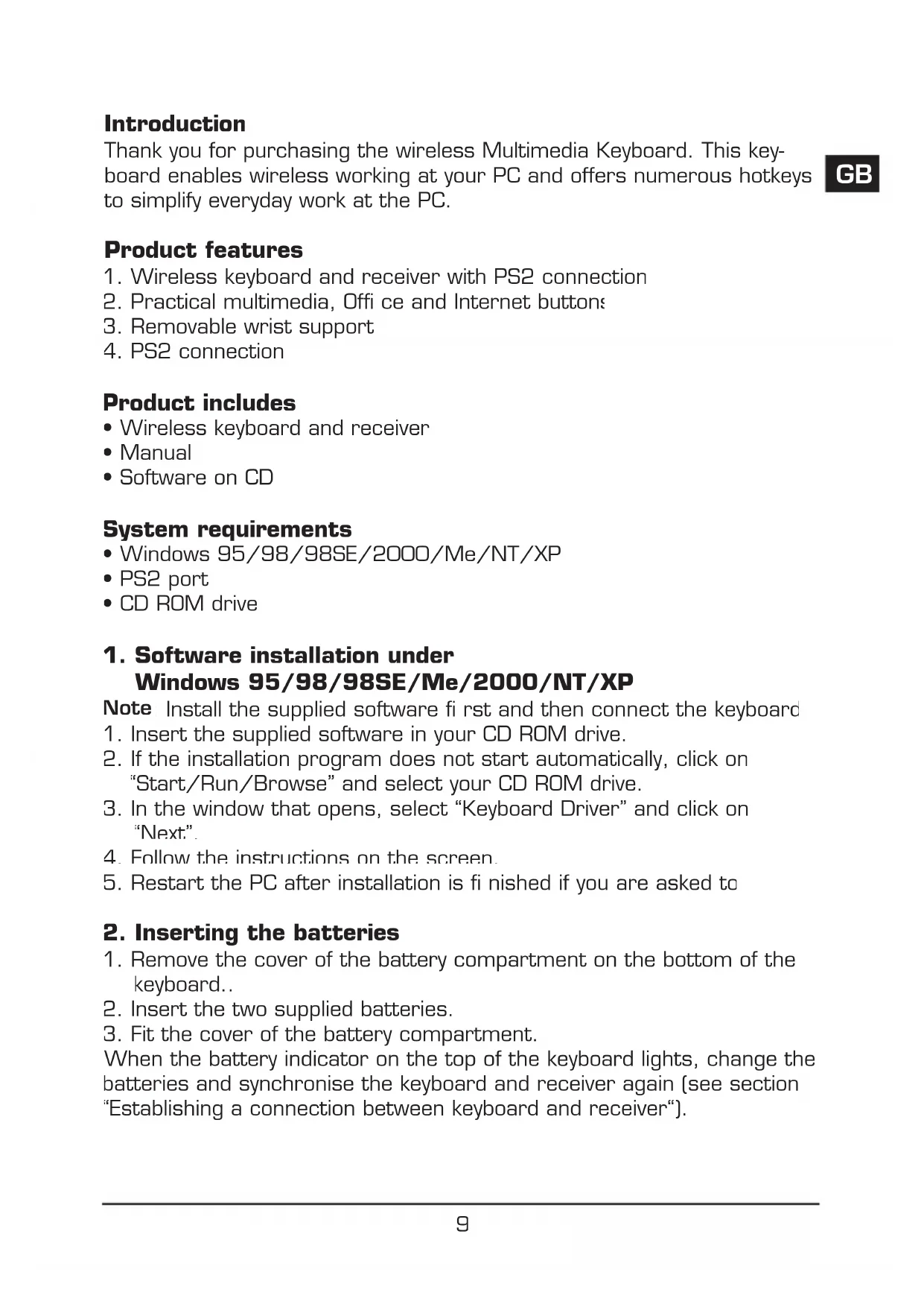 Thank you for purchasing the wireless Multimedia Keyboard. This keyboard enables wireless working at your PC and offers numerous hotkeys to simplify everyday work at the PC.