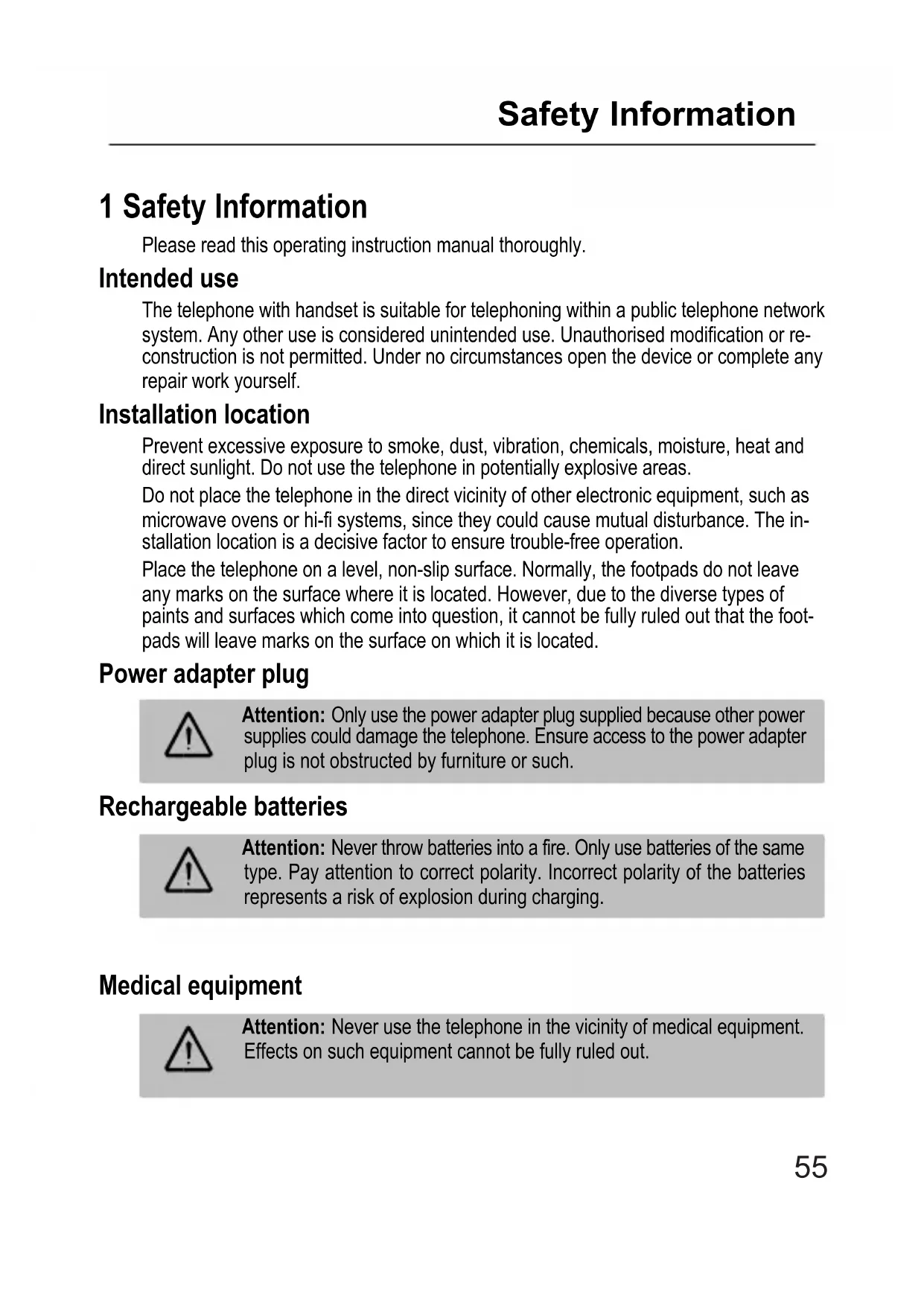 Attention: Never use the telephone in the vicinity of medical equipment. Effects on such equipment cannot be fully ruled out.