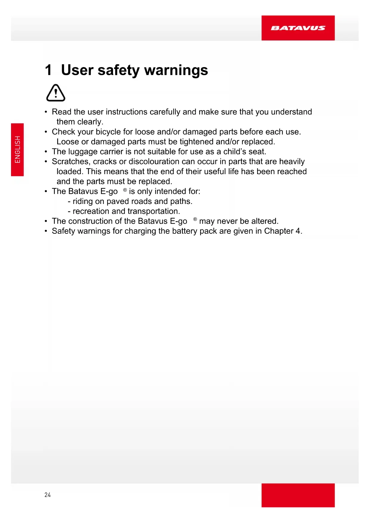 1.2 The warranty can only be exercised by the first owner of the Batavus bicycle.