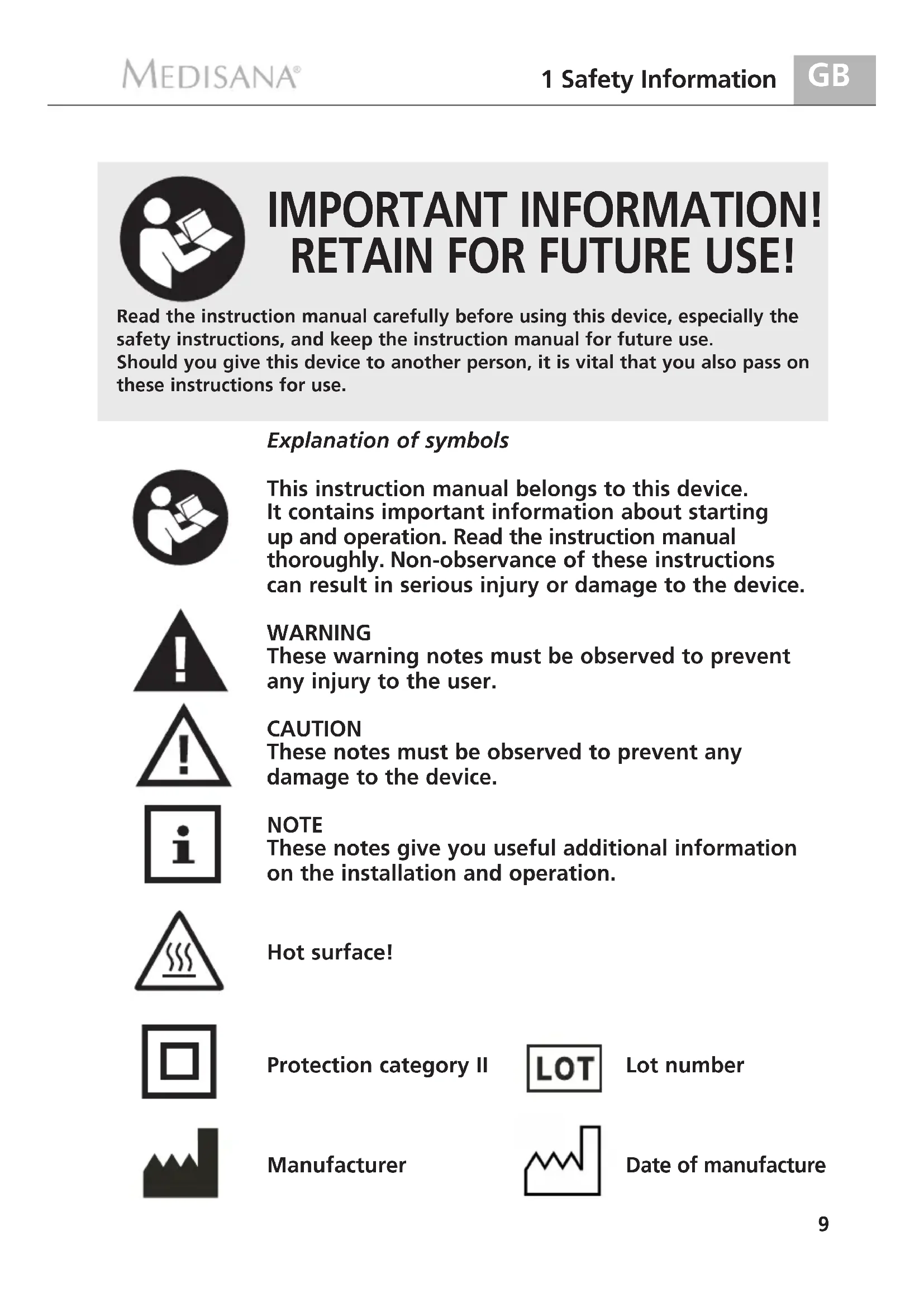 USER MANUAL IRL MEDISANA
