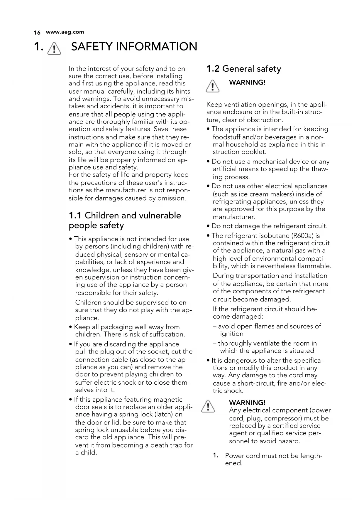 www.aeg.com3. To disconnect the appliance from the power disconnect the mains plug from the power socket.