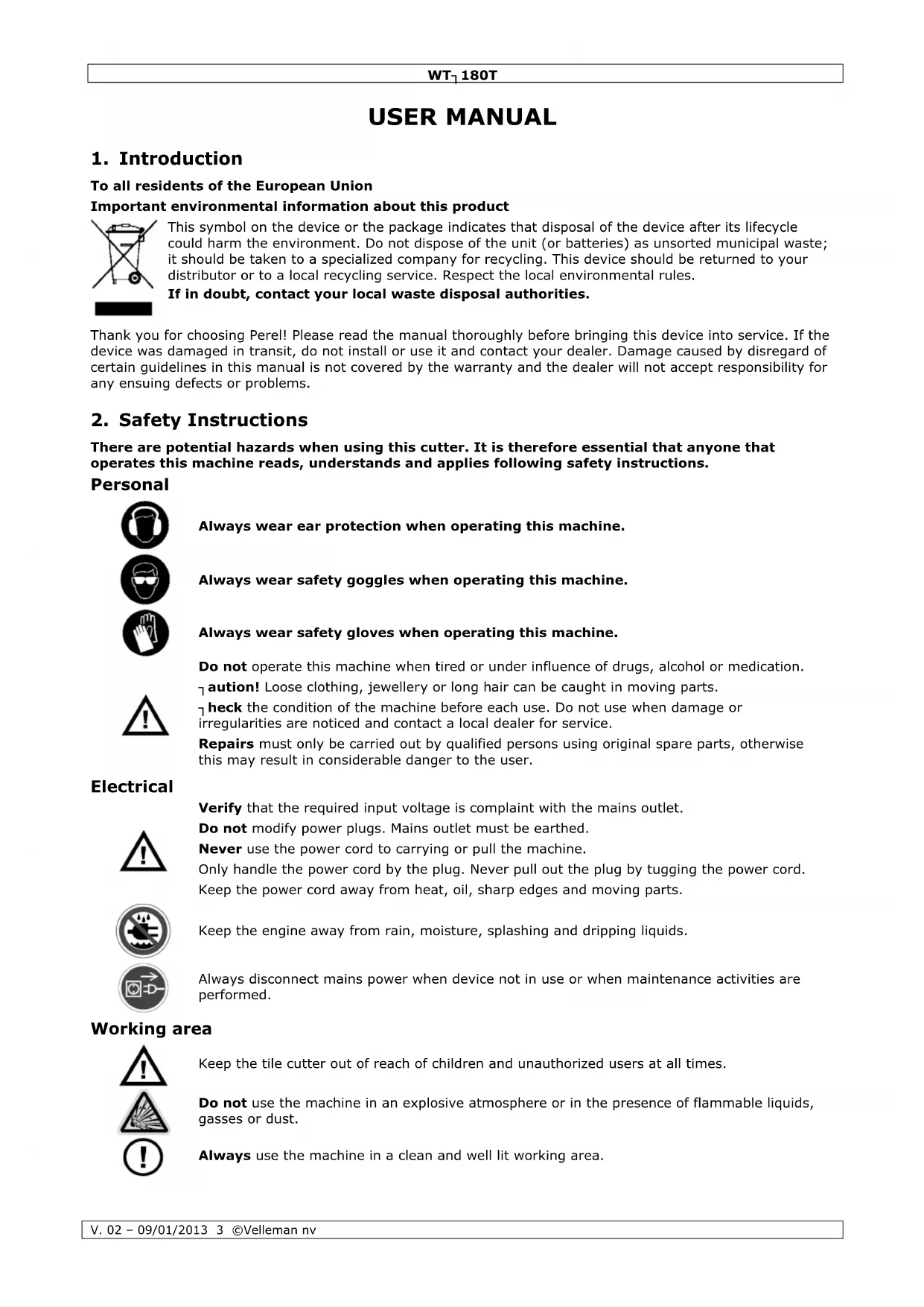 USER MANUAL WTC180T Perel