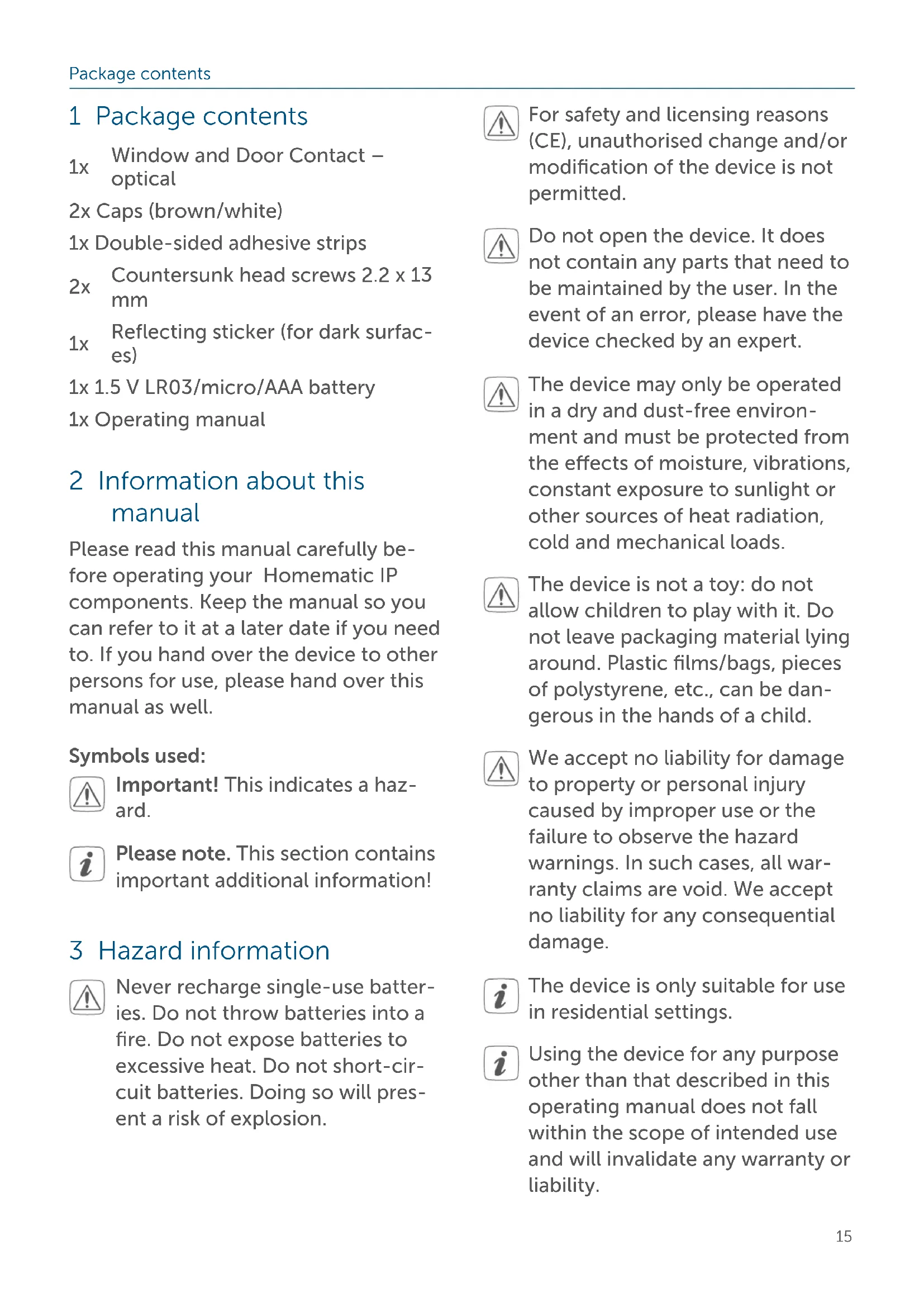 Please read this manual carefully before operating your Homematic IP components. Keep the manual so you can refer to it at a later date if you need to. If you hand over the device to other persons for use, please hand over this manual as well.