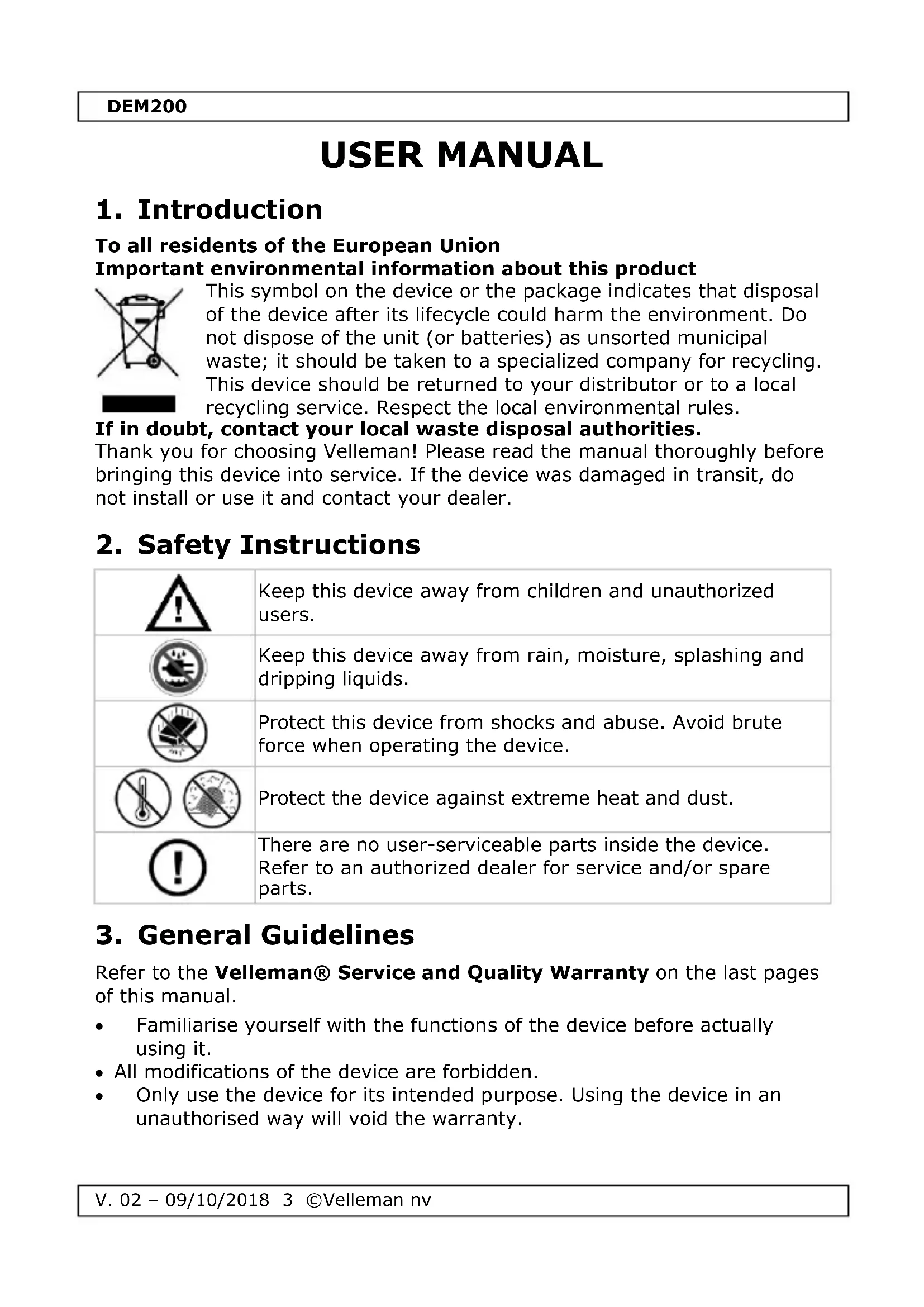 USER MANUAL DEM200 VELLEMAN