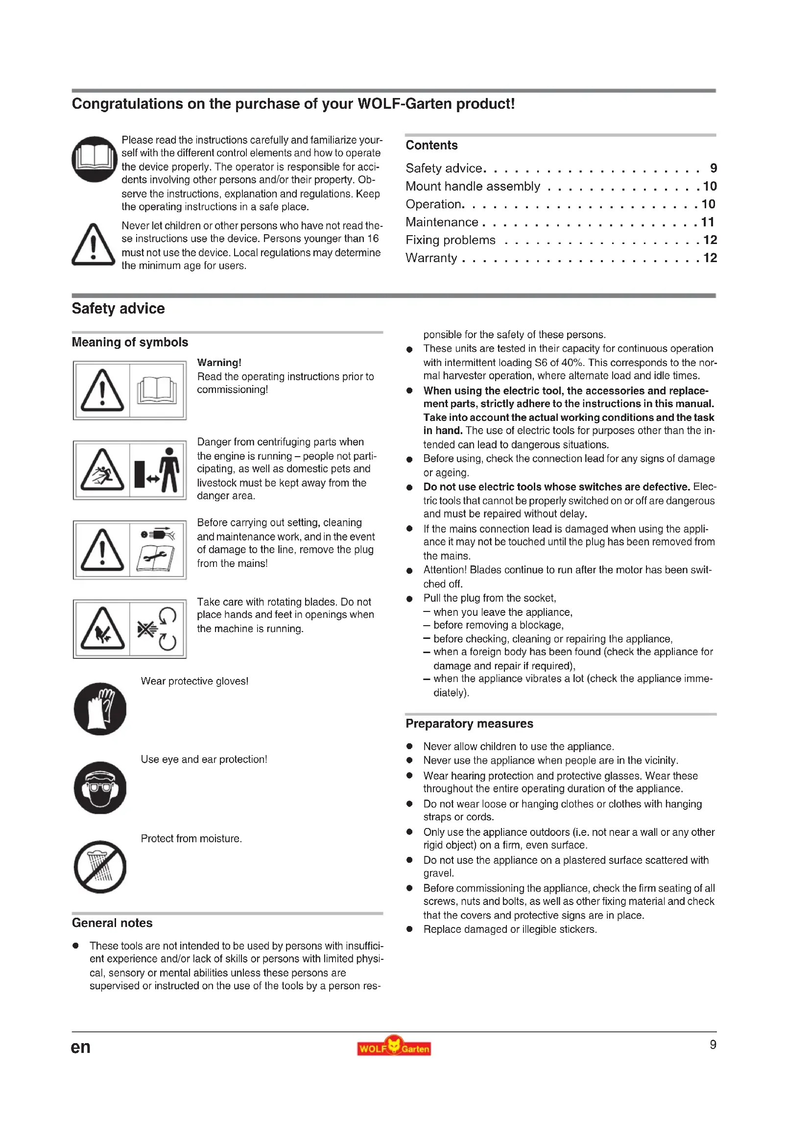 Download the instructions for your Mechanical chipper in PDF format for free! Find your manual SDL 2500 EVO - Wolf Garten and take your electronic device back in hand. On this page are published all the documents necessary for the use of your device. SDL 2500 EVO by Wolf Garten.