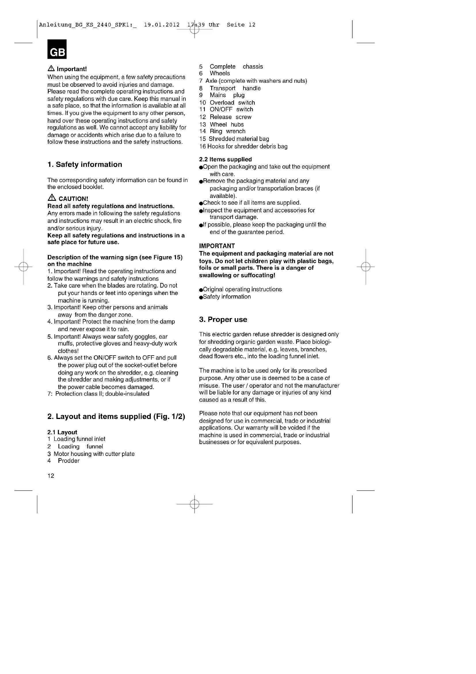 Download the instructions for your Mechanical chipper in PDF format for free! Find your manual BGKS 2440 - EINHELL and take your electronic device back in hand. On this page are published all the documents necessary for the use of your device. BGKS 2440 by EINHELL.