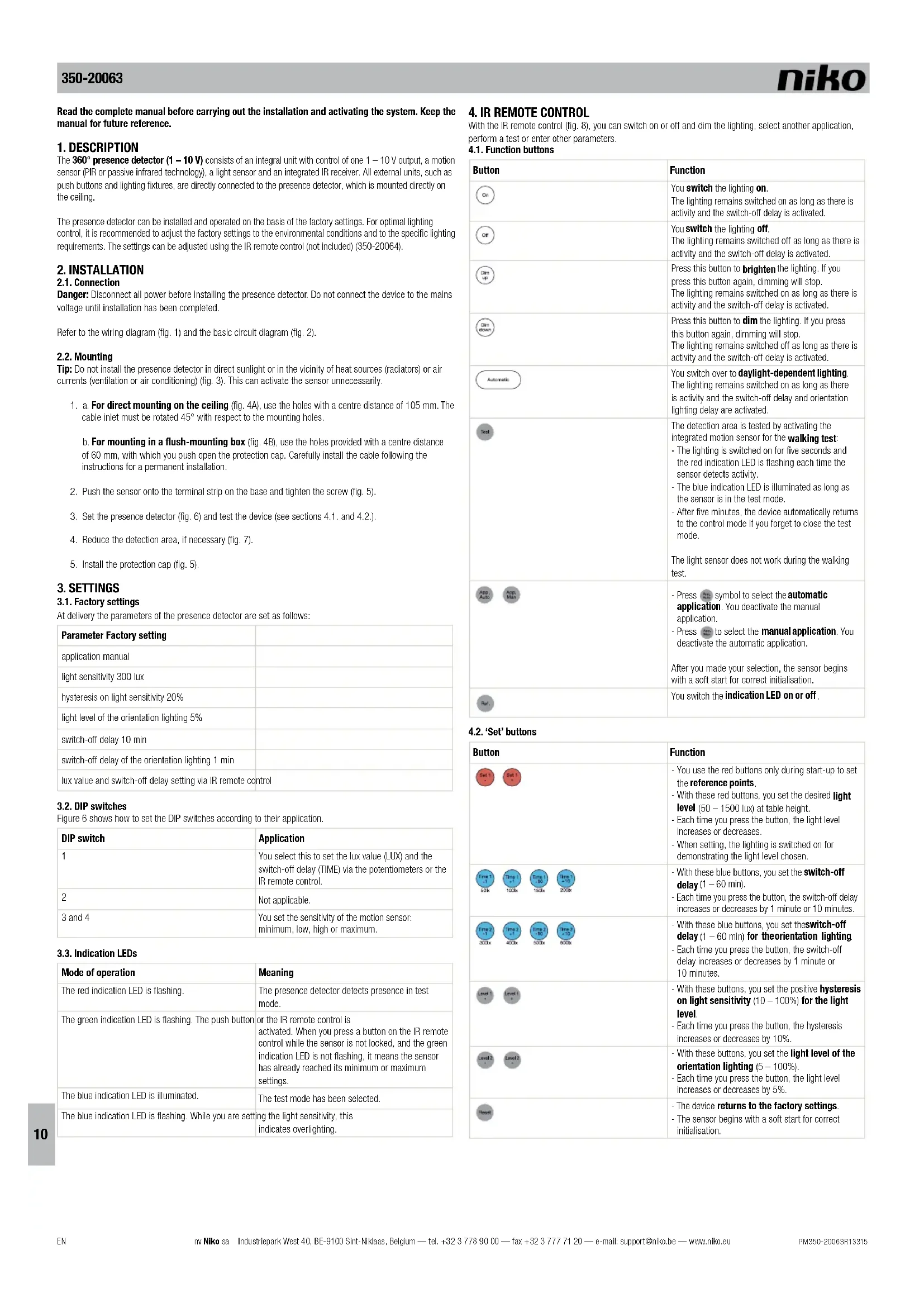 USER MANUAL 35020063 Niko