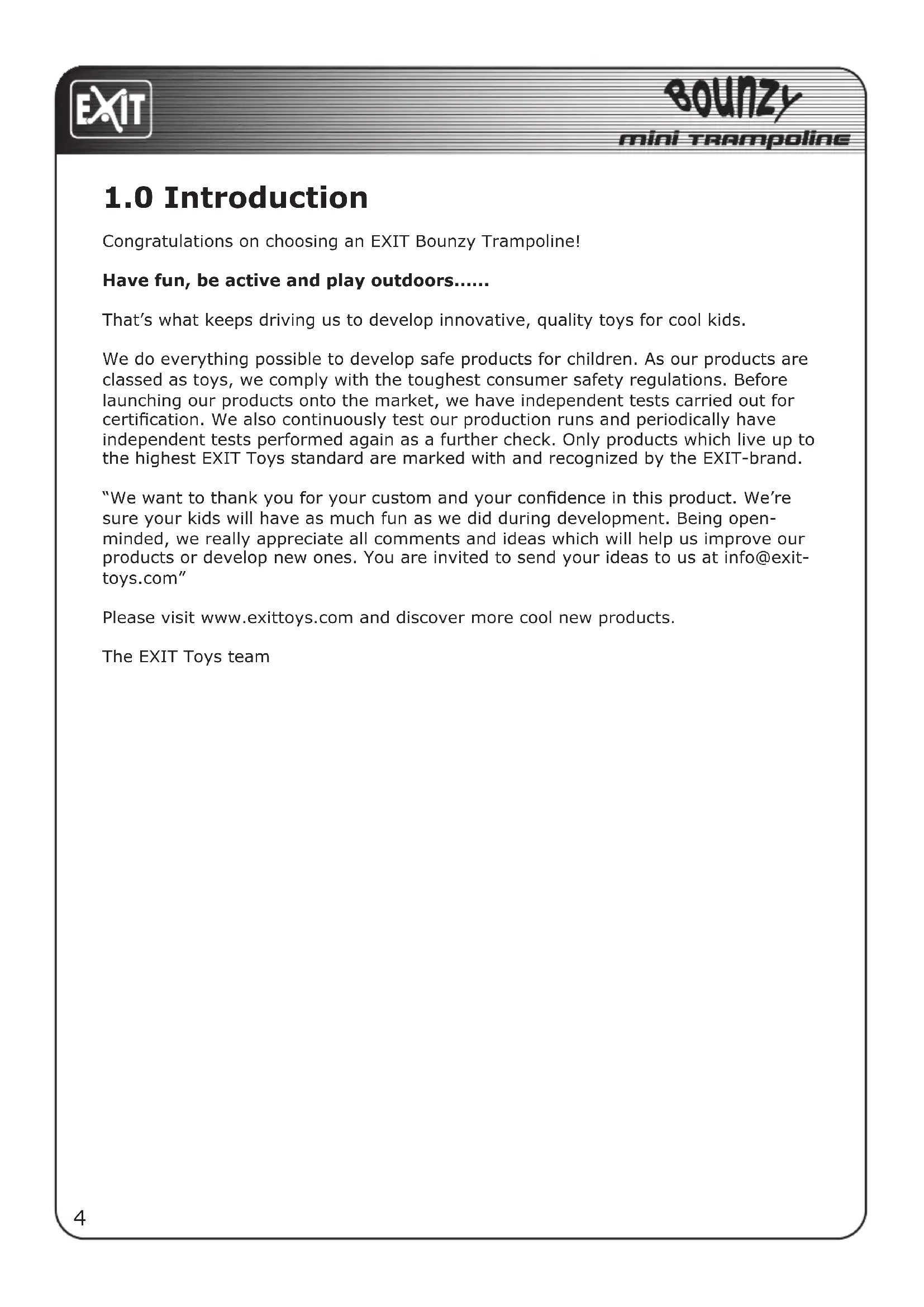 Congratulations on choosing an EXIT Bounzy Trampoline!