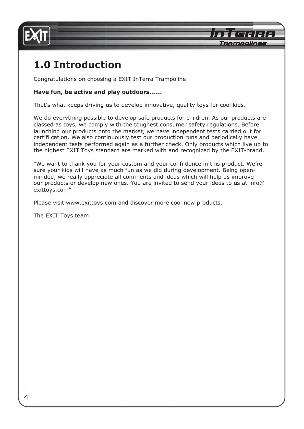 InTerra - Trampoline EXIT - Free user manual and instructions