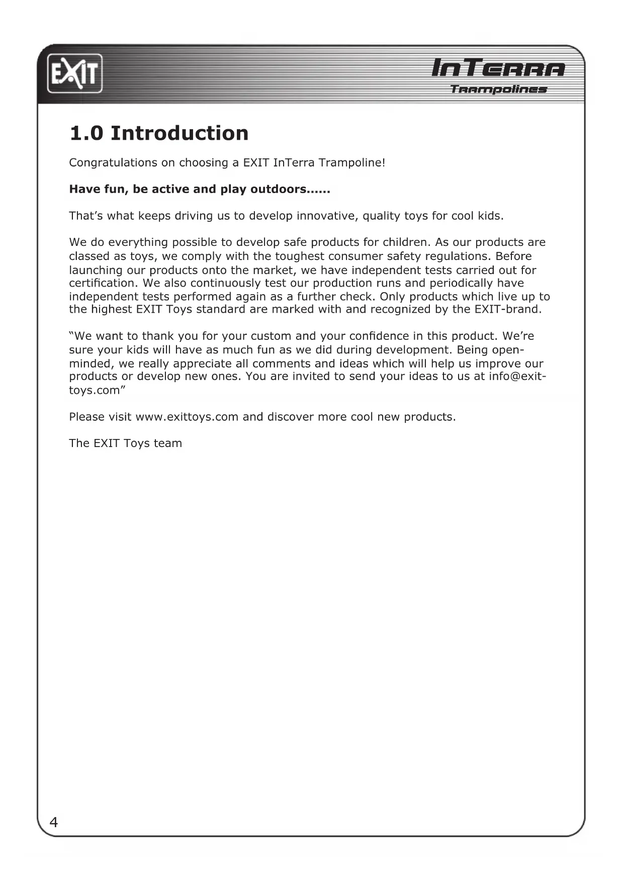 Congratulations on choosing a EXIT InTerra Trampoline!