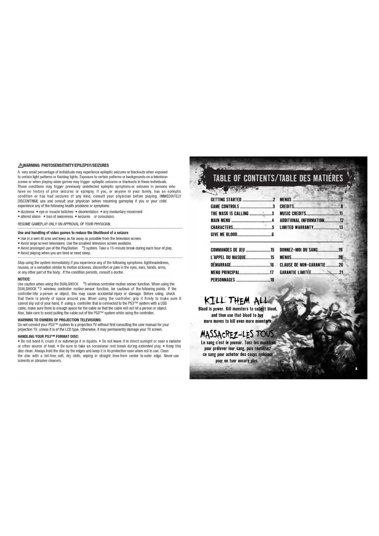 MATURE 17+ JEUNES ADULTES 17+ M CONTENT RATED BY CONTENUÉ EVALUÉ PAR ESRB splatter House® namco®WARNING: PHOTOSENSITIVITY/EPILEPSY/SEIZURES