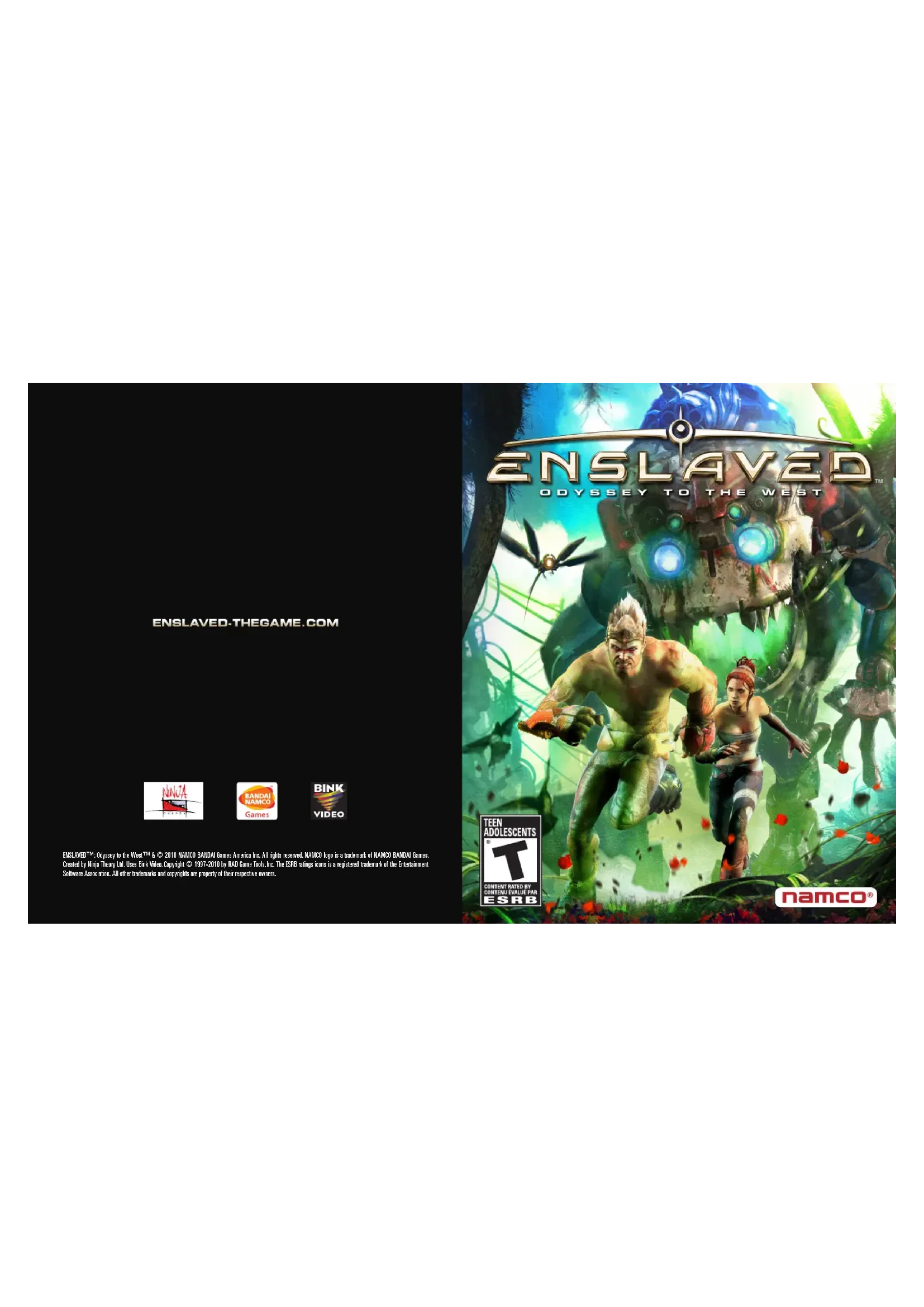 EASUVED-Depuyto the West 18402010 NAMCO BANDAI Game Americas Inc. All rights reserved. NAMCO logs in a trademark of NAMCO BANDAI Games. Created by Ilijo Theory Ltd. Uses Bank Vices Copyright 1937-2010 by RAD Game Tools, Inc. The ESRB licenses are a registered trademark of the Entertainment Software Association. All other trademarks and copyrights are property of their respective owners.