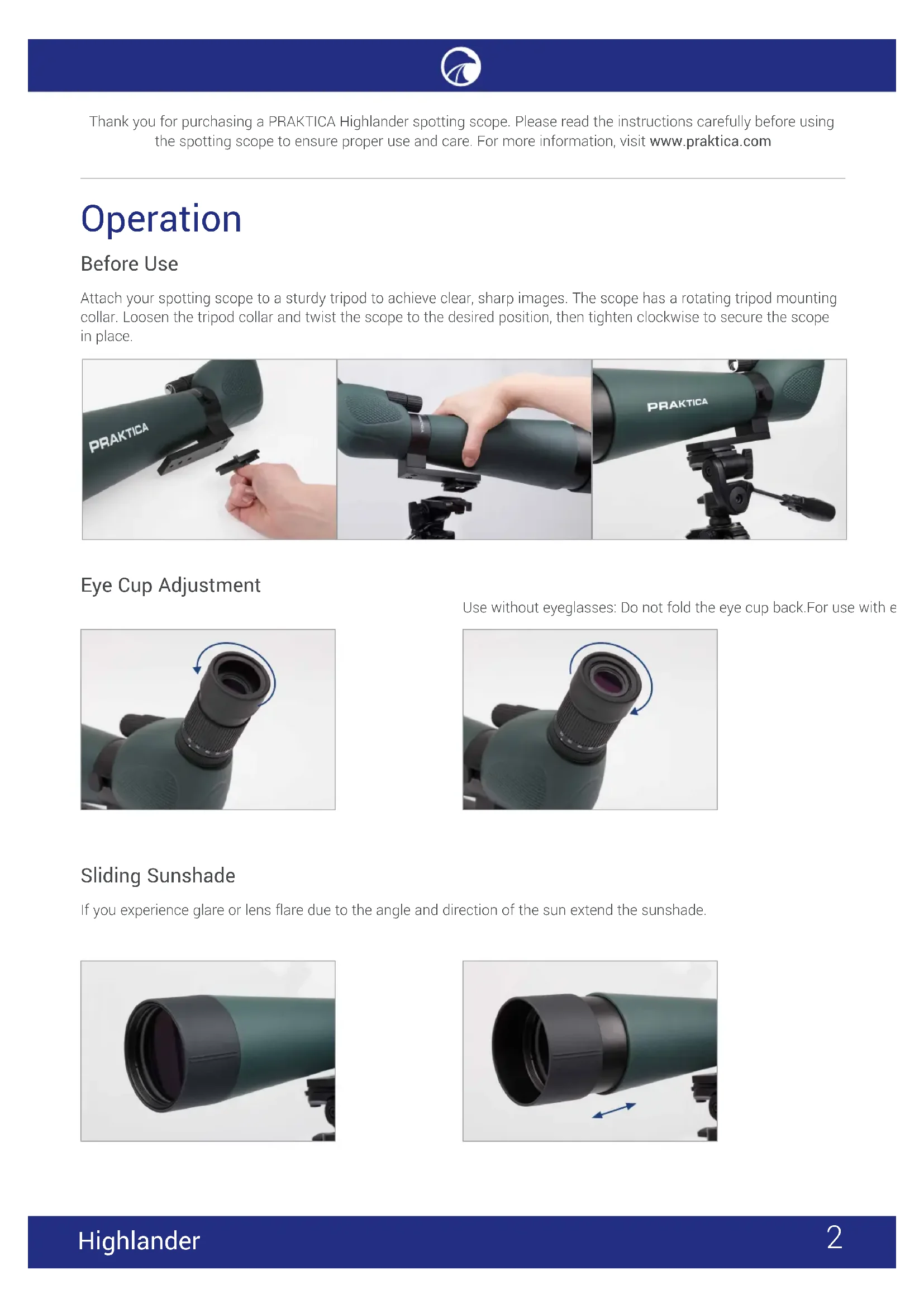 Download the instructions for your Binoculars in PDF format for free! Find your manual Highlander 2060x80 - Praktica and take your electronic device back in hand. On this page are published all the documents necessary for the use of your device. Highlander 2060x80 by Praktica.