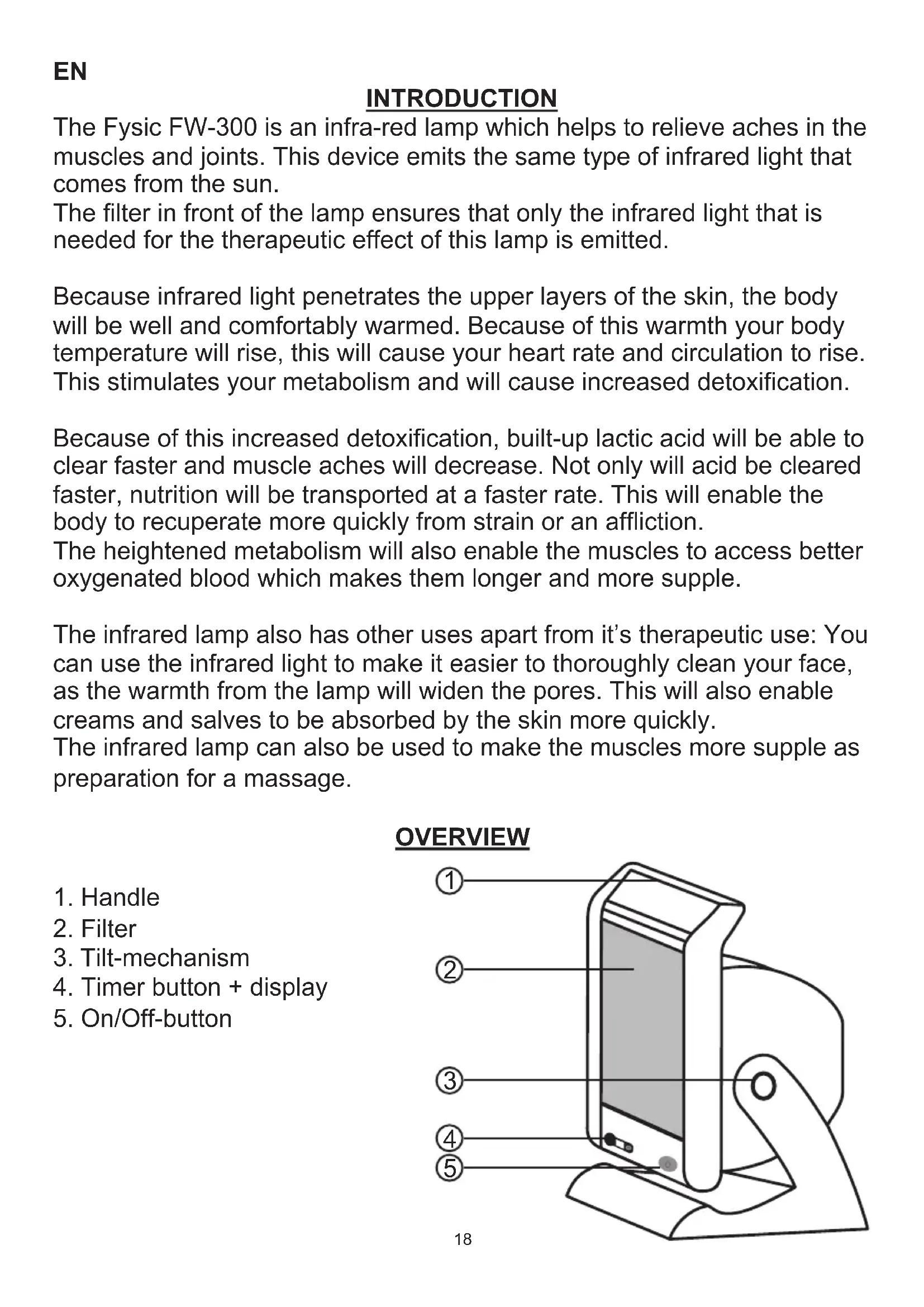 The Fysic FW-300 is an infra-red lamp which helps to relieve aches in the muscles and joints. This device emits the same type of infrared light that comes from the sun.