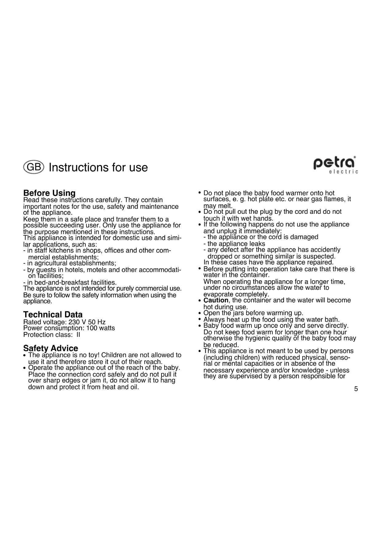 BF1 - Bottle warmer Petra Electric - Free user manual and instructions
