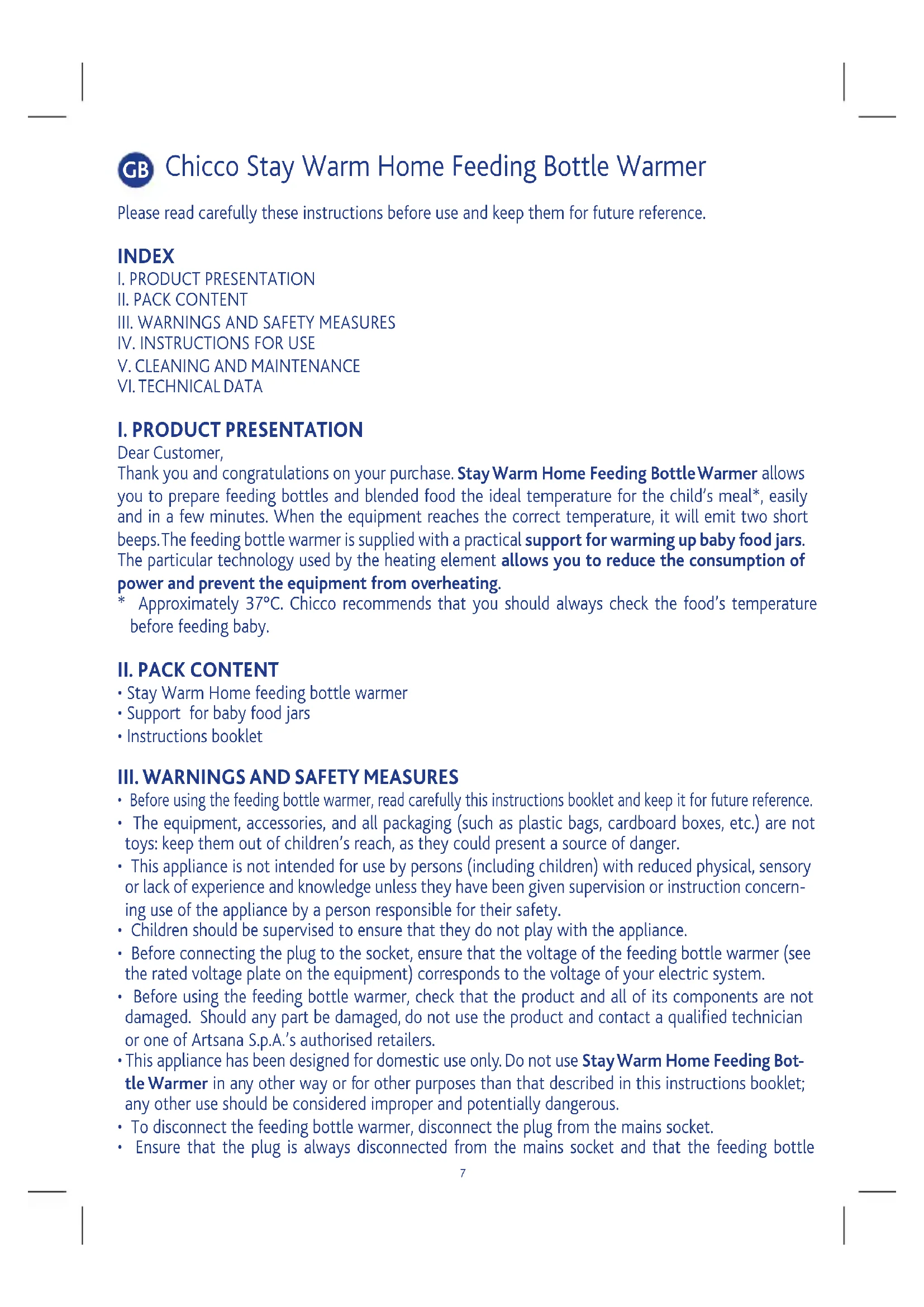 - Before using the feeding bottle warmer, read carefully this instructions booklet and keep it for future reference.