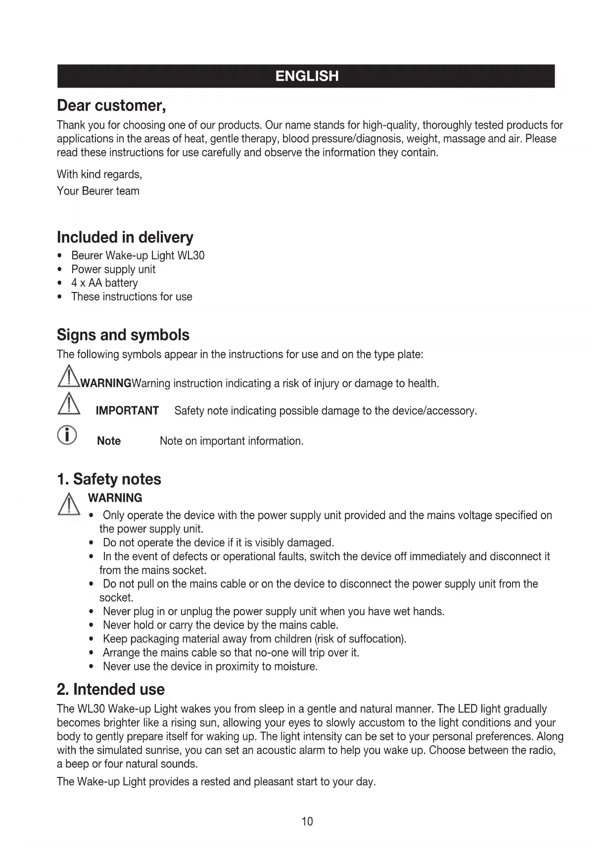 USER MANUAL WL 30 BEURER