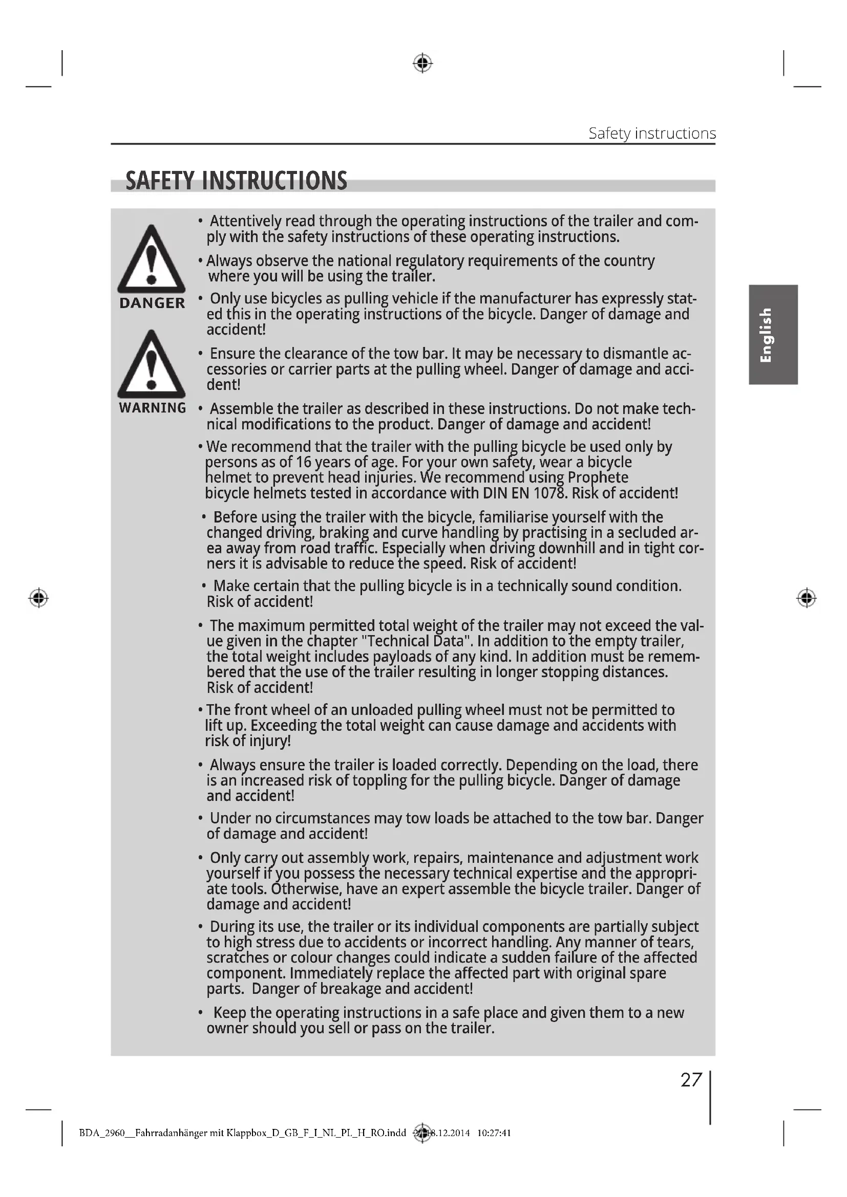 2960 - Bike trailer Prophete - Free user manual and instructions
