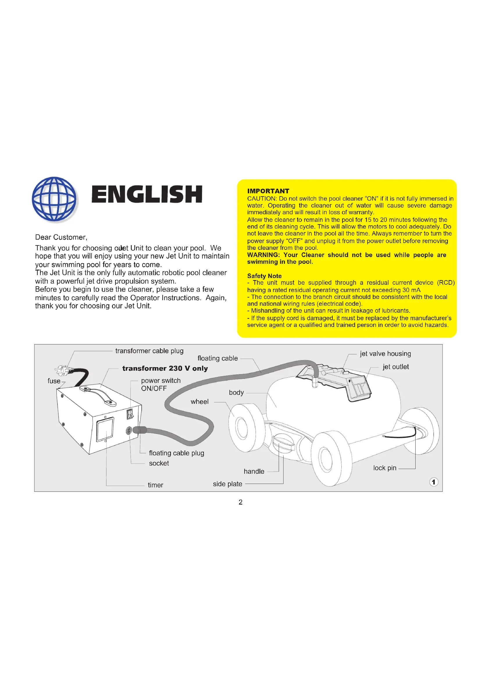 Thank you for choosing ouet Unit to clean your pool. We hope that you will enjoy using your new Jet Unit to maintain your swimming pool for years to come.