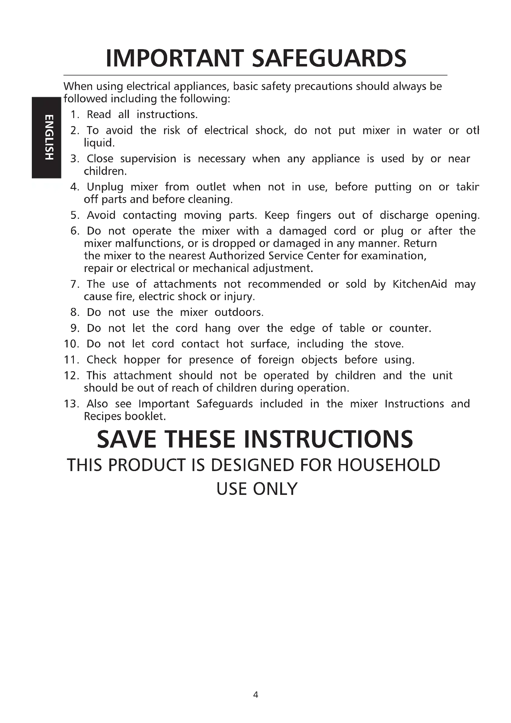 - Recipes ENGLISH4 IMPORTANT SAFEGUARDS When using electrical appliances, basic safety precautions should always be followed including the following: p. 11