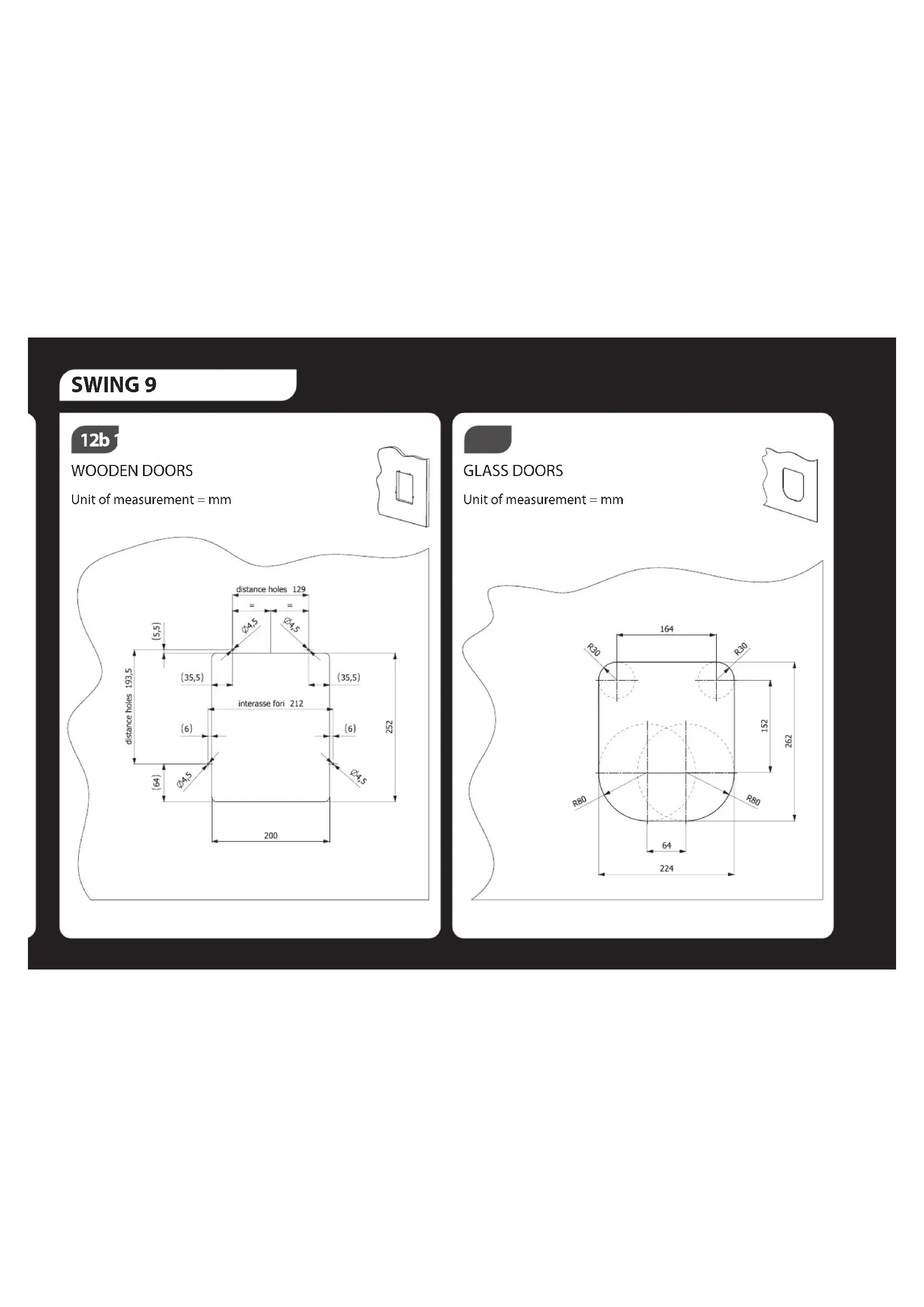 distance holes 129 = = φ4.5 φ4.5 (5,5) (35,5) (35,5) interasse fori 212 (6) (6) φ4.5 φ4.5 (64) 200 252GLASS DOORS