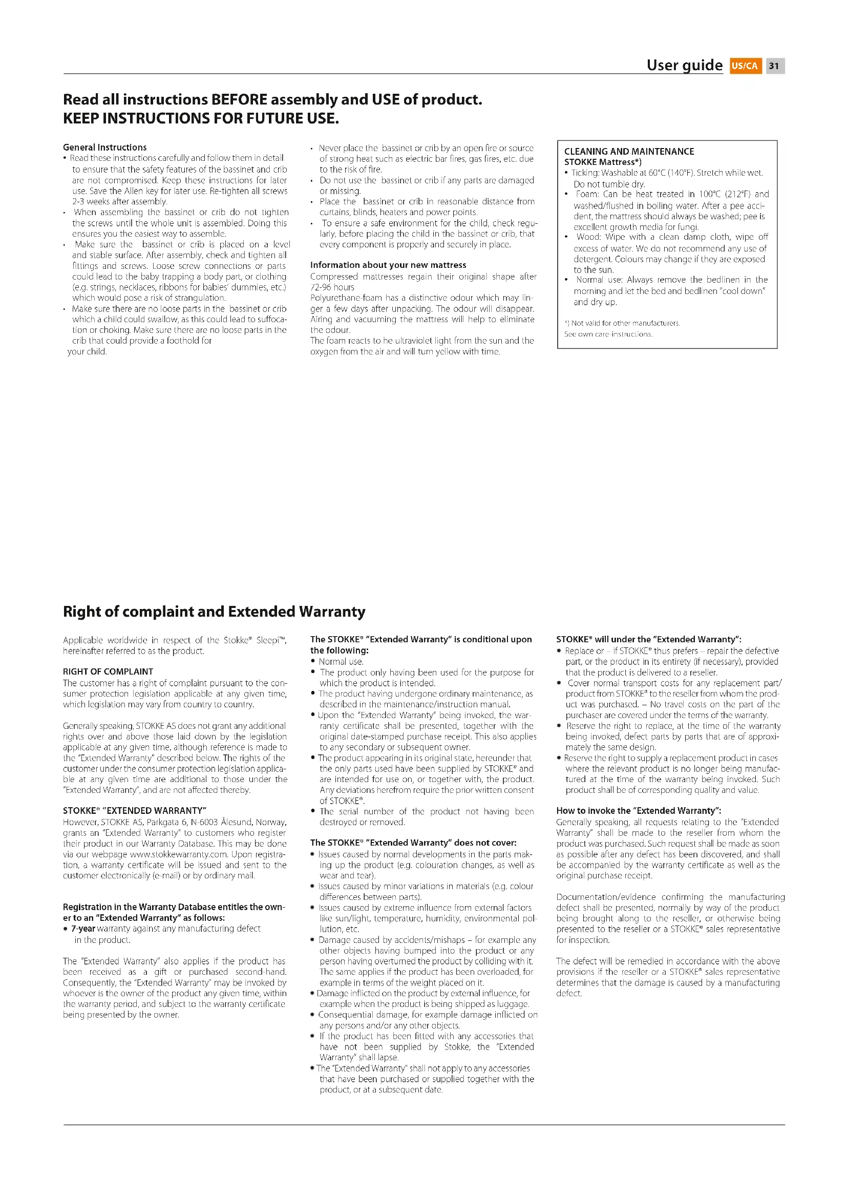 The customer has a right of complaint pursuant to the con- sumer protection legislation applicable at any given time, which legislation may vary from country to country. Generally speaking, STOKKE AS does not grant any additional rights over and above those laid down by the legislation applicable at any given time, although reference is made to the ”Extended Warranty” described below. The rights of the customer under the consumer protection legislation applica- ble at any given time are additional to those under the ”Extended Warranty”, and are not affected thereby.