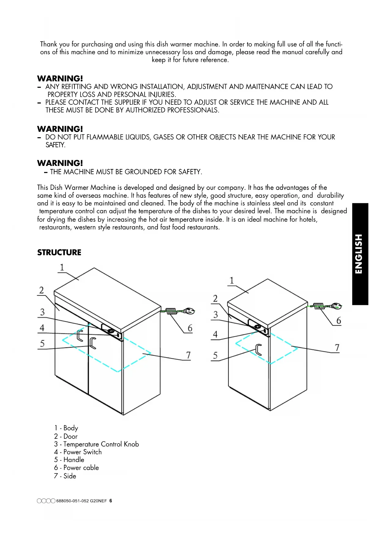 Thank you for purchasing and using this dish warmer machine. In order to making full use of all the functions of this machine and to minimize unnecessary loss and damage, please read the manual carefully and keep it for future reference.