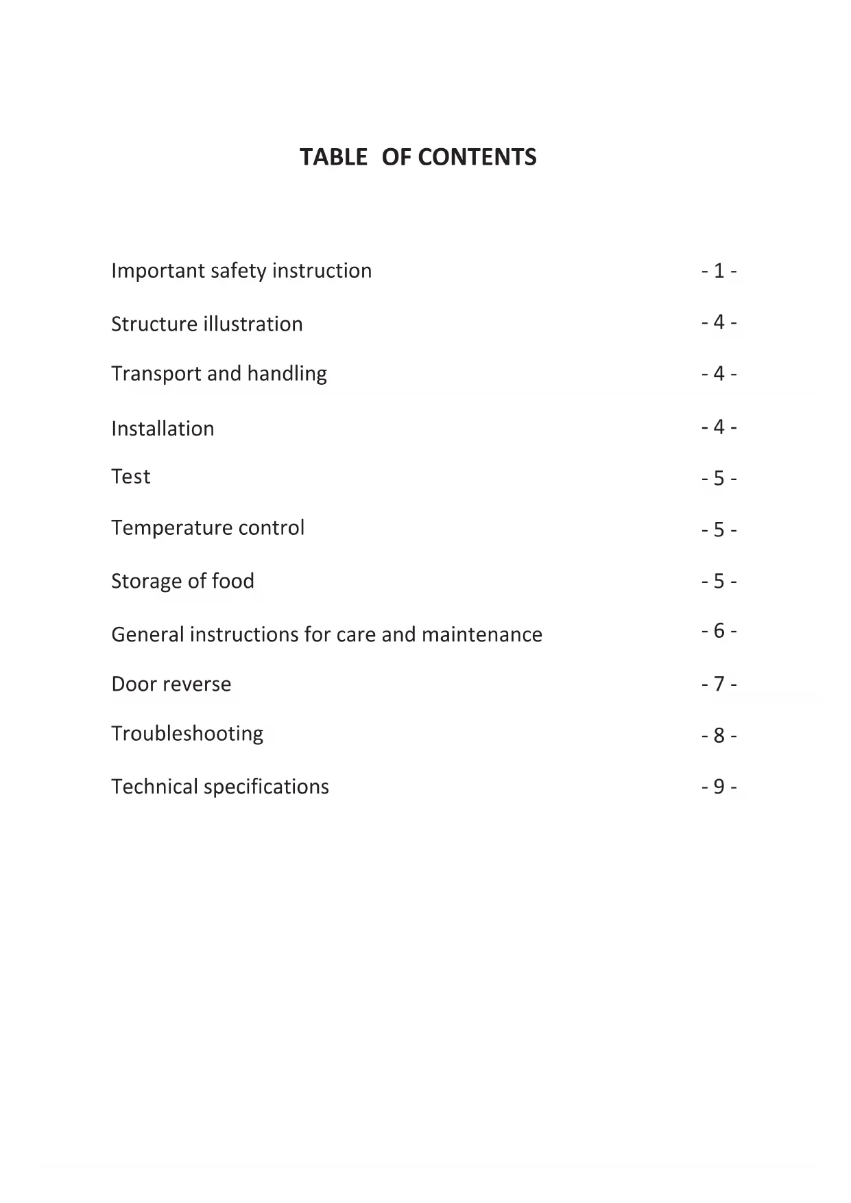 To fix stably, the appliance must be placed on a flat and solid surface. It should not be laid on any soft material. Choose a well-ventilated place. A space of at least 5cm must be left at the sides and 10cm at the back of the refrigerator. The cabinet spacers supplied with the appliance must be installed to protect and control distance from the wall. Choose a location where there is no heat source. Keep the refrigerator away from direct sunlight or other appliance producing heat. Choose a dry and well-ventilated place where there is no corrosive air.TEST Clean the parts of the refrigerator with lukewarm water on a soft cloth or with a neutral detergent and with clear water, then wipe them dry. Notes: Electric parts of the refrigerator can only be wiped by dry cloth. Turn the thermostat knob on the "3" position and turn on electricity. The compressor and the light inside the refrigerator begin to work. Close the door and wait 30 minutes. If the temperature in the freezer compartment decreased obviously, it shows that the refrigerator system works well. When the refrigerator operates for a period of time, the temperature controller will automatically set the temperature on conditions that the door is not too often opened. If the above steps are successful, the trial operations are finished. The refrigerator works normally.